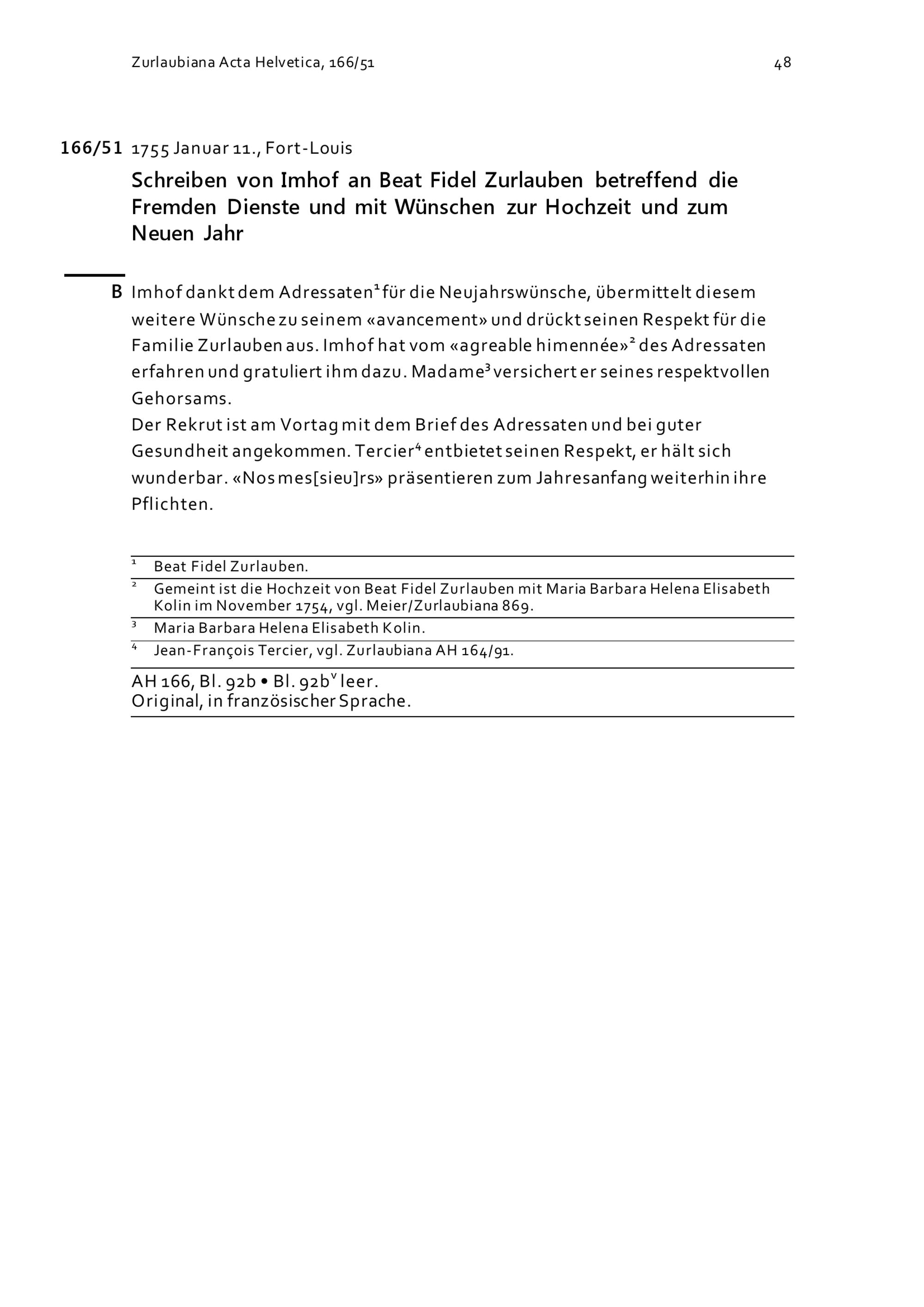 Schreiben von Imhof an Beat Fidel Zurlauben betreffend die Fremden Dienste und mit Wünschen zur Hochzeit und zum neuen Jahr
