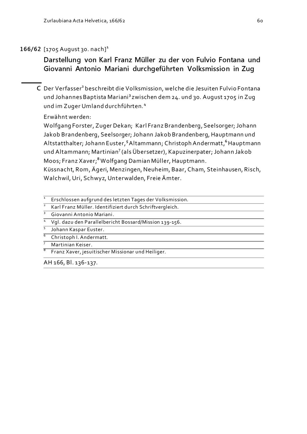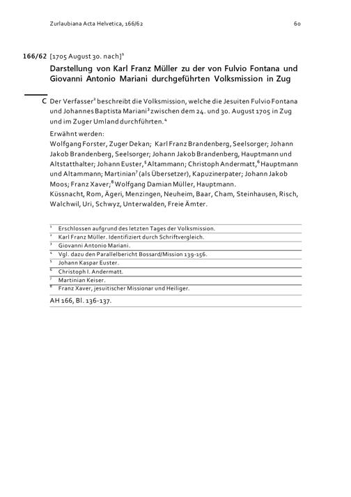 Darstellung von Karl Franz Müller zu der von Fulvio Fontana und Giovanni Antonio Mariani durchgeführten Volksmission in Zug
