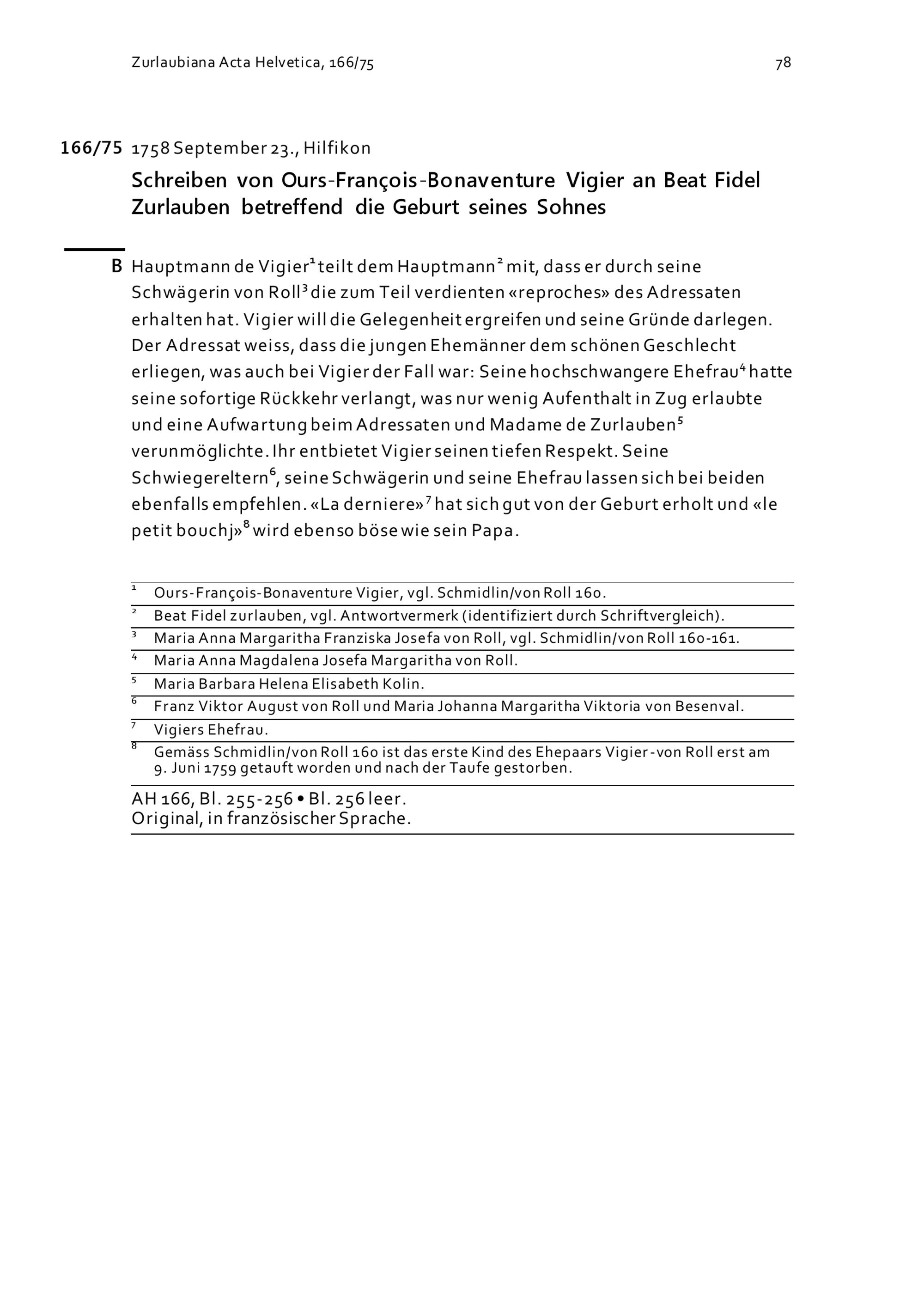 Schreiben von Ours-François-Bonaventure Vigier an Beat Fidel Zurlauben betreffend die Geburt seines Sohns