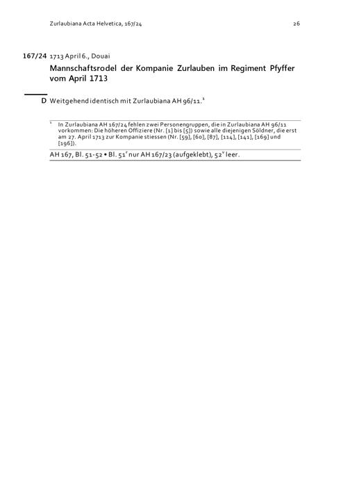 Mannschaftsrodel der Kompanie Zurlauben im Regiment Pfyffer vom April 1713