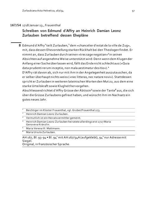 Schreiben von Edmund d'Affry an Heinrich Damian Leonz Zurlauben betreffend dessen Ehepläne