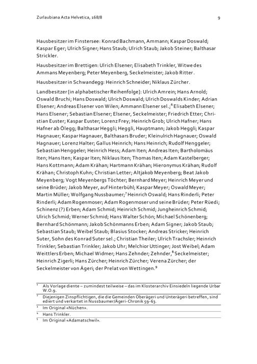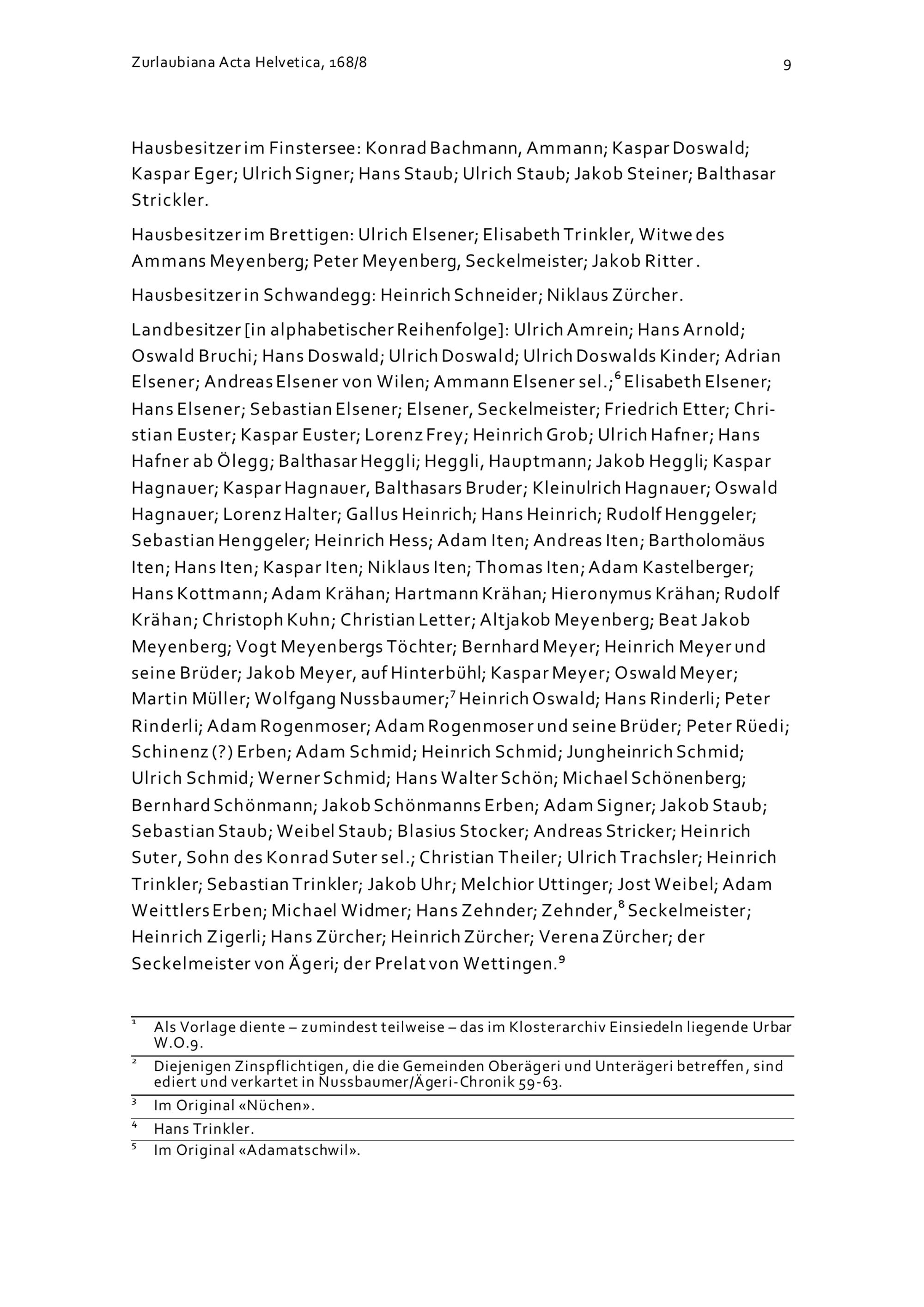 Urbar über die dem Kloster Einsiedeln zustehenden Bodenzinse des Hofs Ägeri auf dem Gebiet von Ägeri, Neuheim, Menzingen und Baar