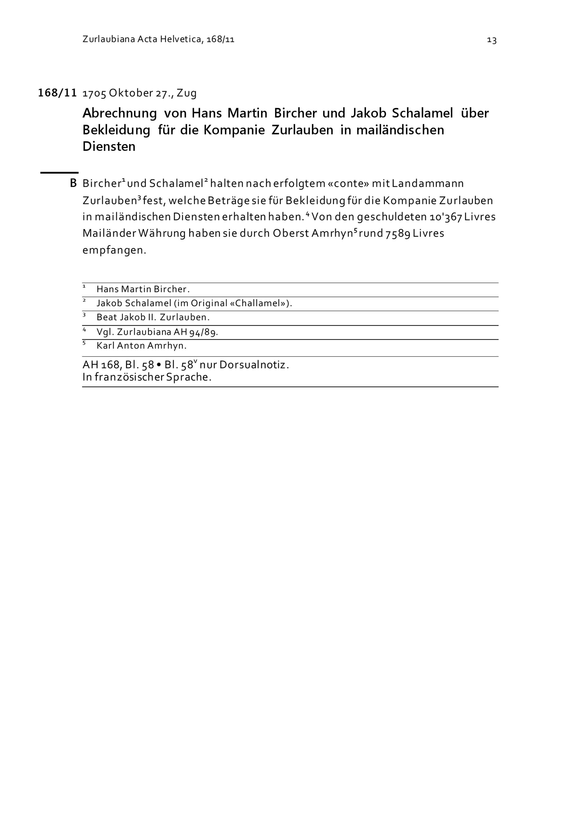 Acta Helvetica, Band 168