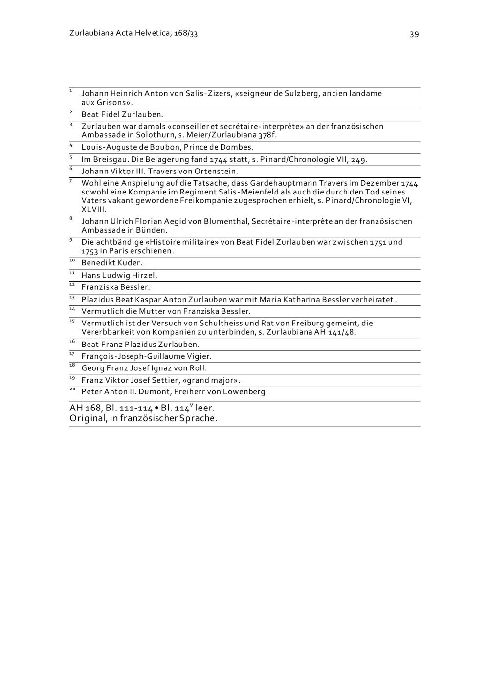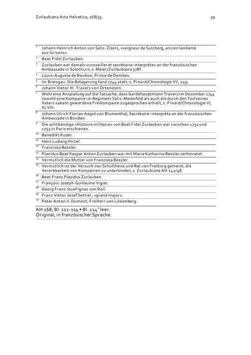 Schreiben von Johann Heinrich Anton von Salis-Zizers an Beat Fidel Zurlauben betreffend die Fremden Dienste in Frankreich und wissenschaftliche Publikationen