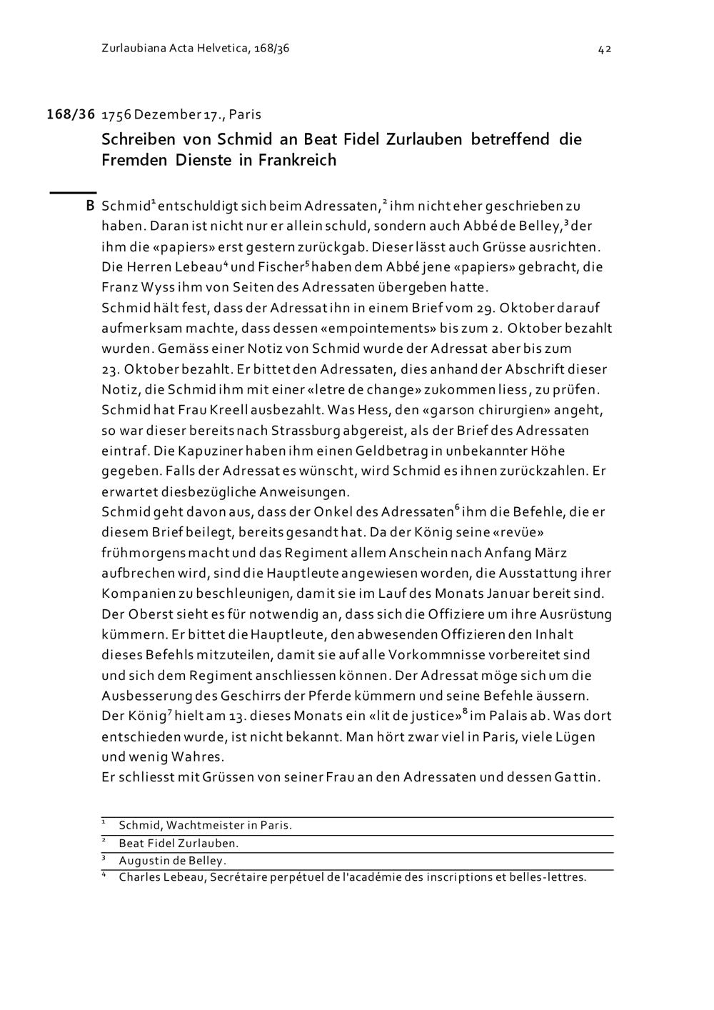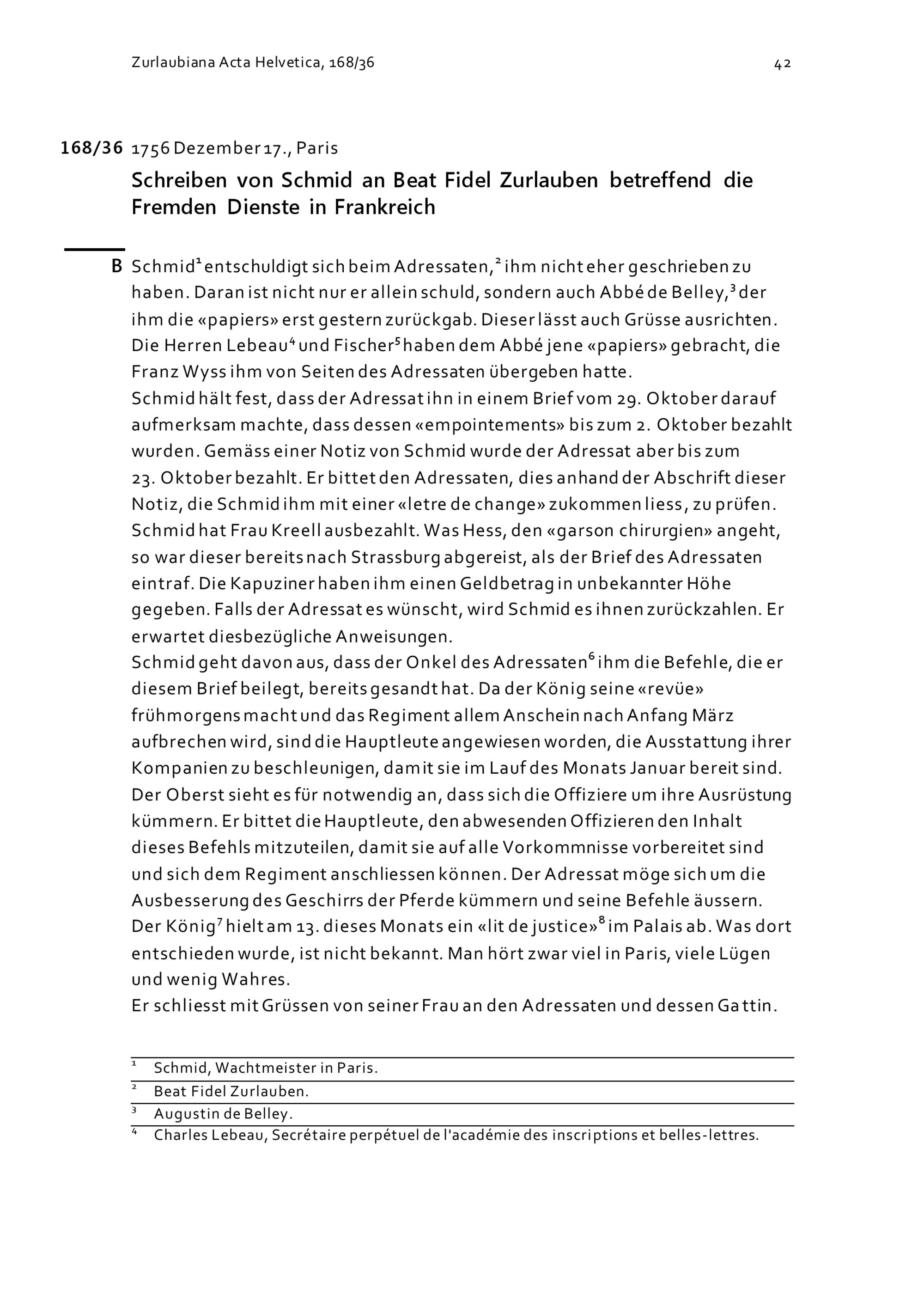 Schreiben von Schmid an Beat Fidel Zurlauben betreffend die Fremden Dienste in F...
