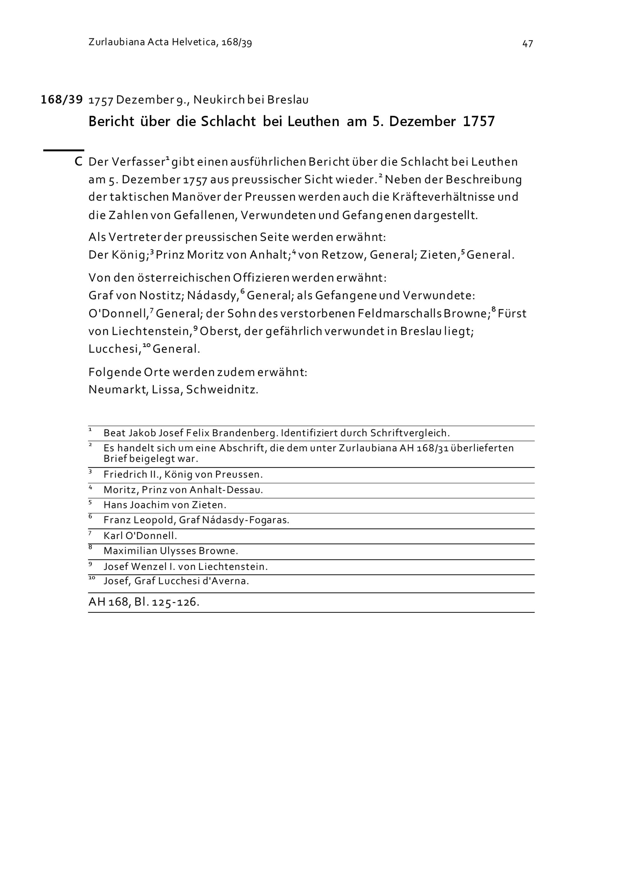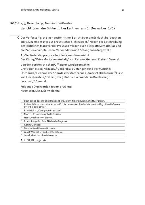 Bericht über die Schlacht bei Leuthen am 5. Dezember 1757