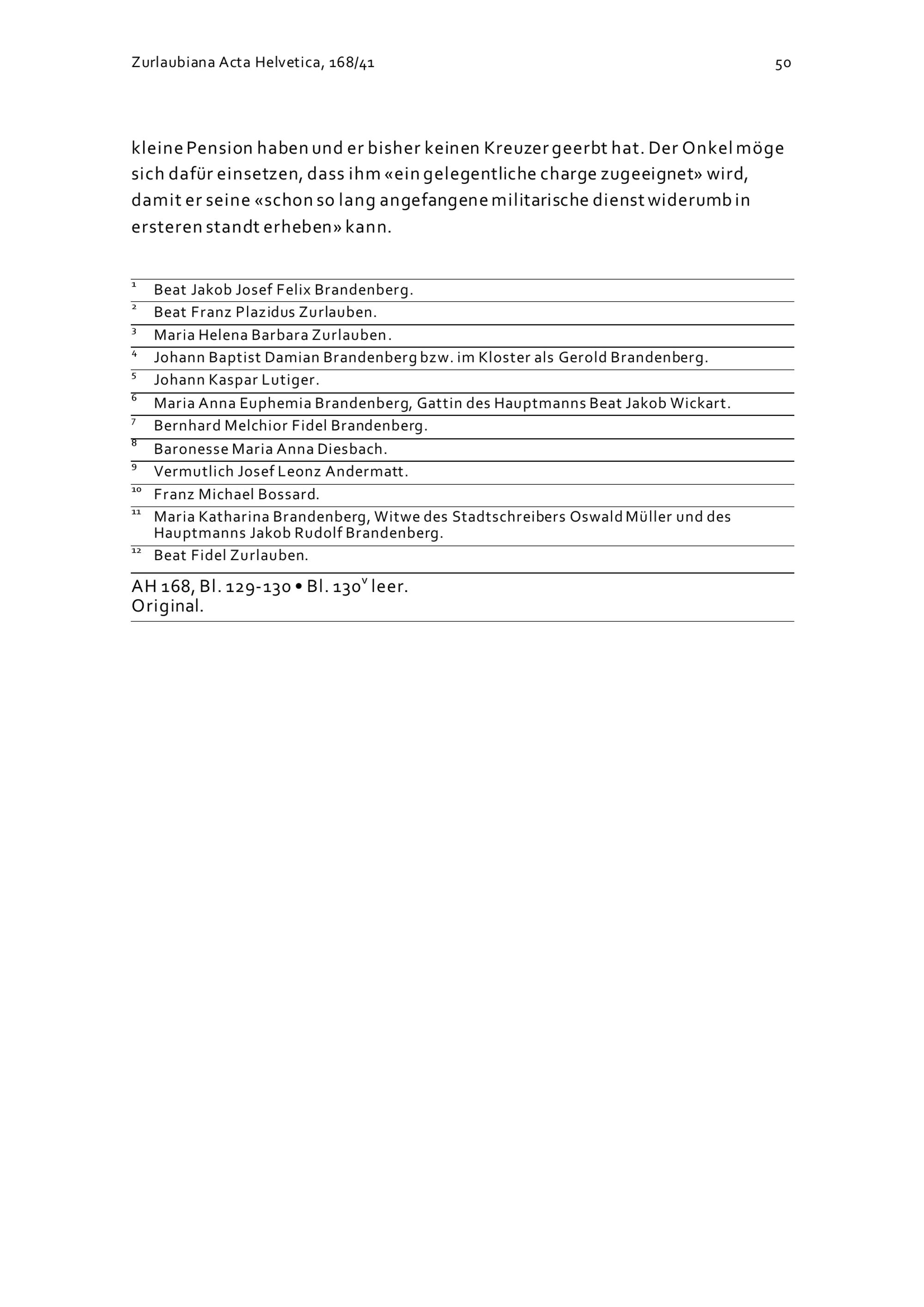 Schreiben von Beat Jakob Josef Felix Brandenberg an Beat Franz Plazidus Zurlauben...