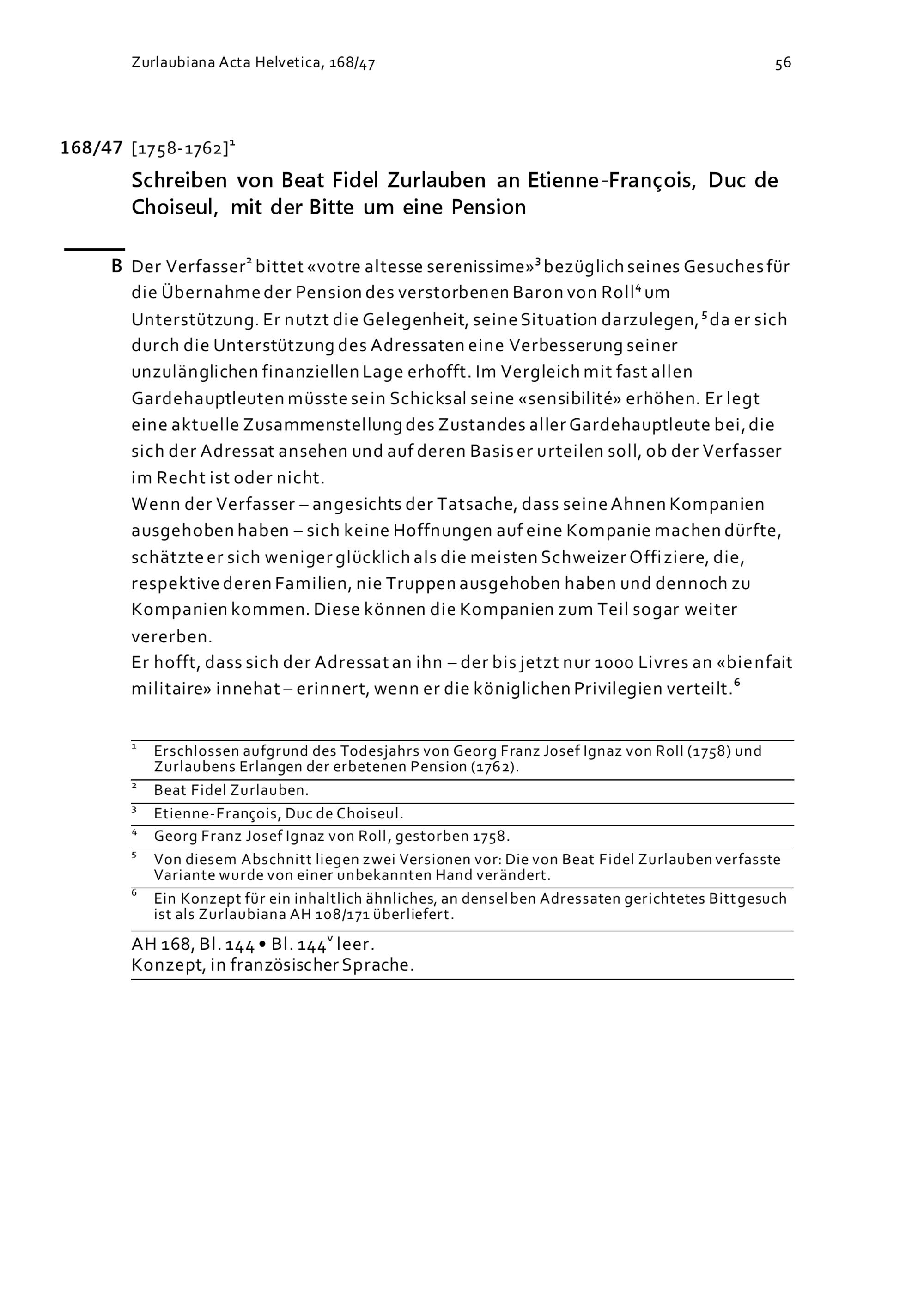 Schreiben von Beat Fidel Zurlauben an Etienne-François, Duc de Choiseul, mit der Bitte um eine Pension