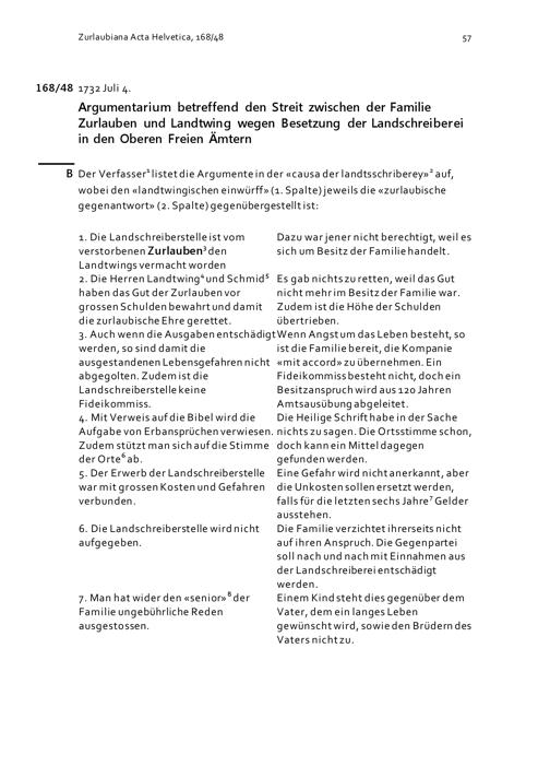 Argumentarium betreffend den Streit zwischen den Familien Zurlauben und Landtwing...