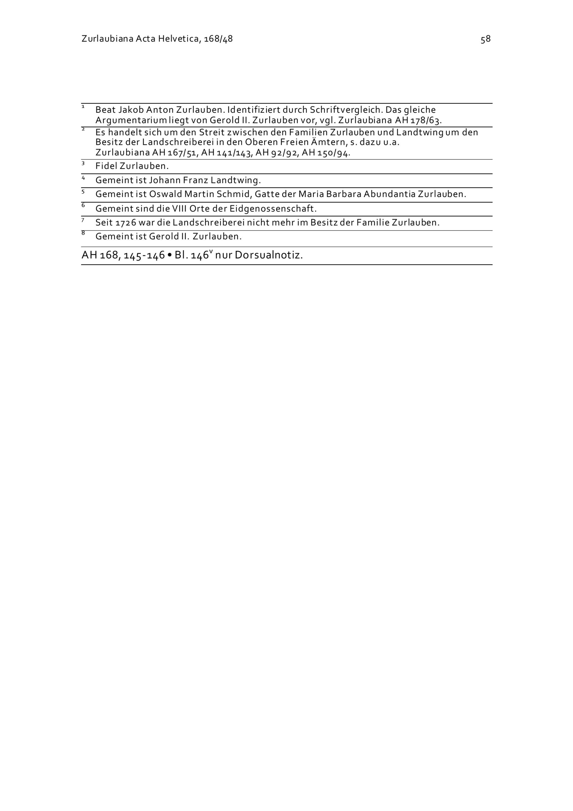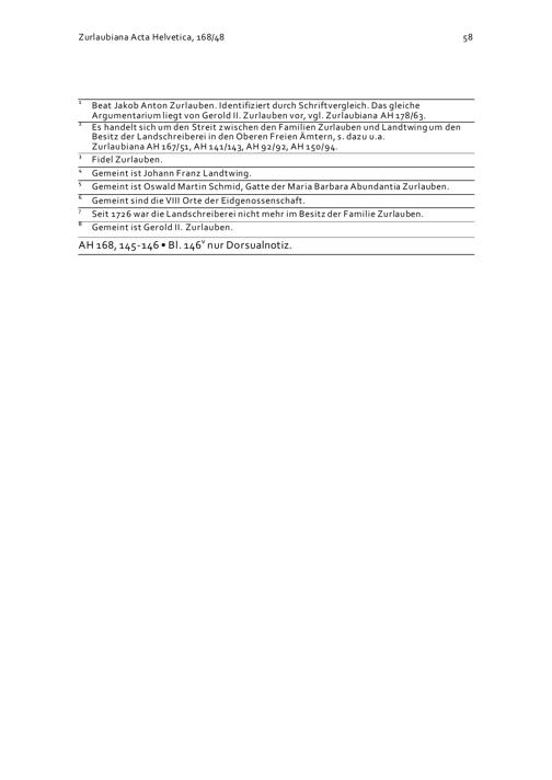 Argumentarium betreffend den Streit zwischen den Familien Zurlauben und Landtwing...