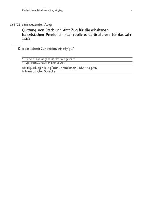 Quittung von Stadt und Amt Zug für die erhaltenen französischen Pensionen für das Jahr 1683
