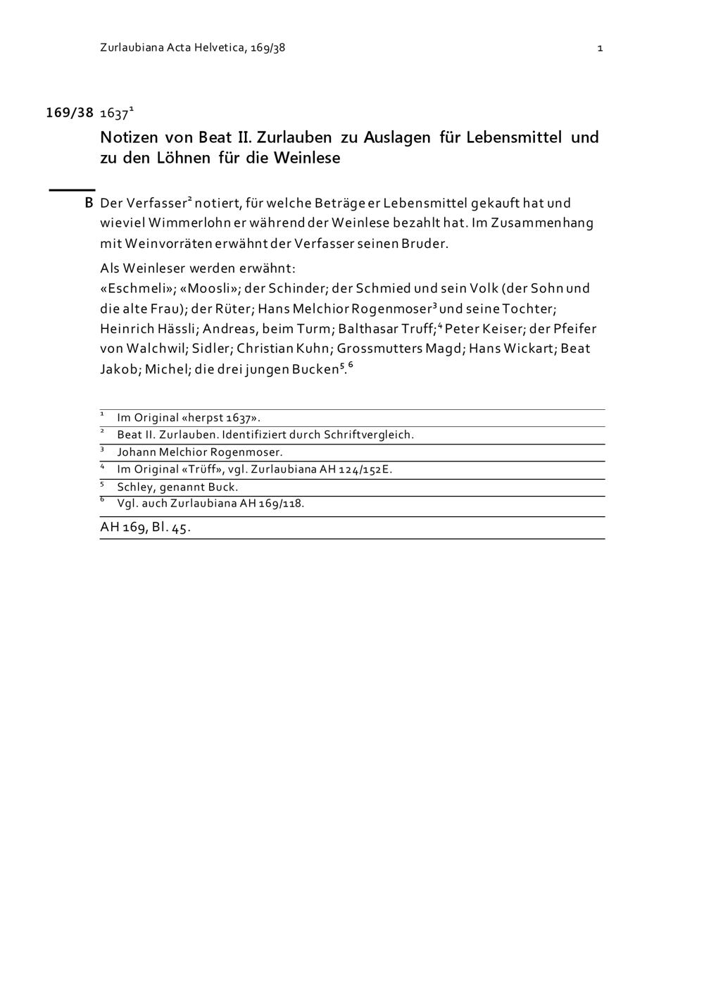 Notiz von Beat II. Zurlauben zu Auslagen für Lebensmittel und zu den Löhnen für die Weinlese