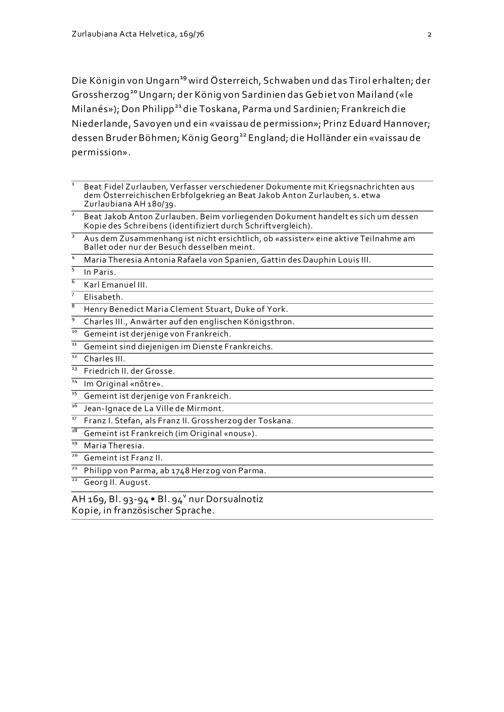 Schreiben von Beat Fidel Zurlauben an Beat Jakob Anton Zurlauben betreffend Hof- und Kriegsnachrichten aus dem österreichischen Erbfolgekrieg