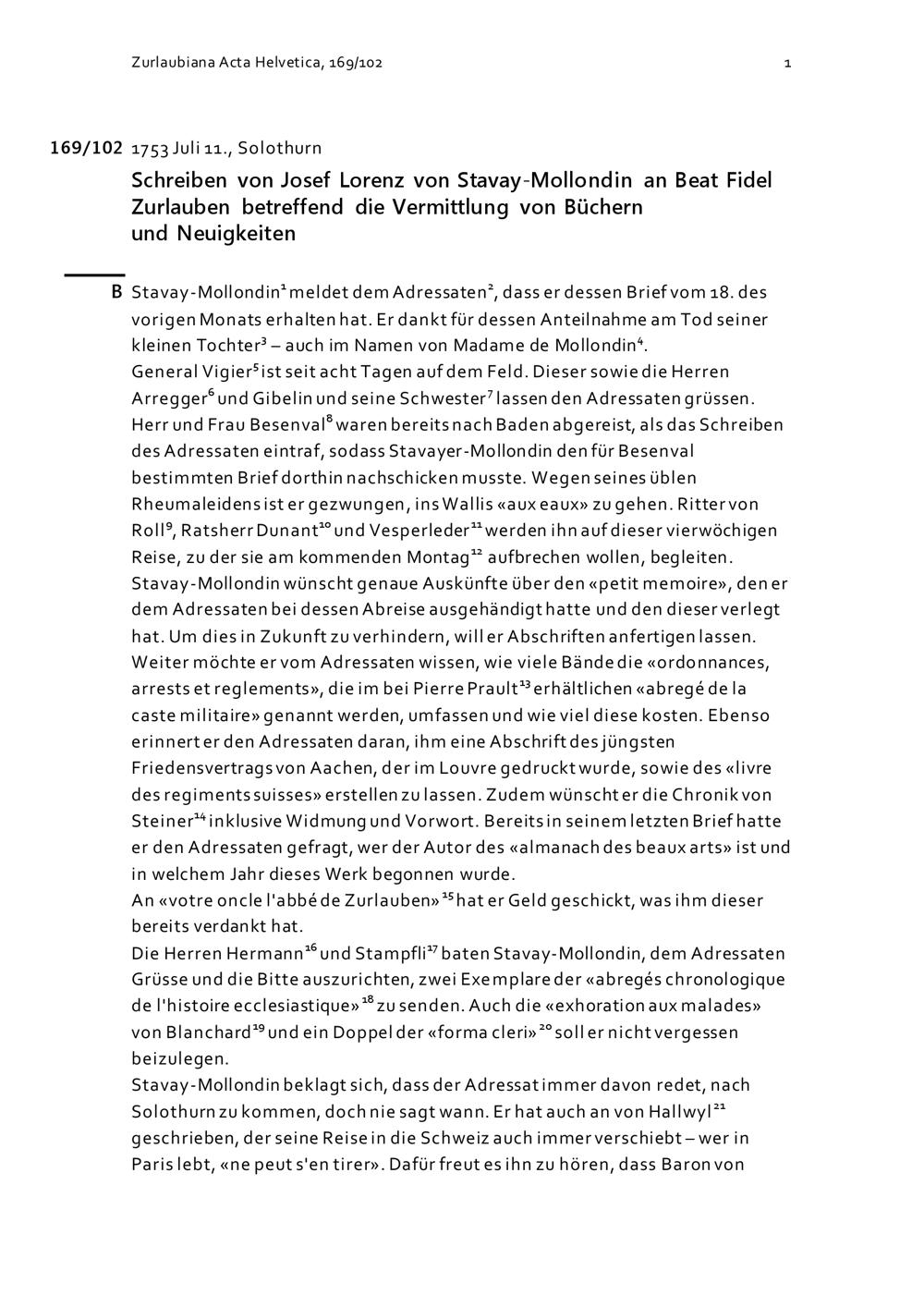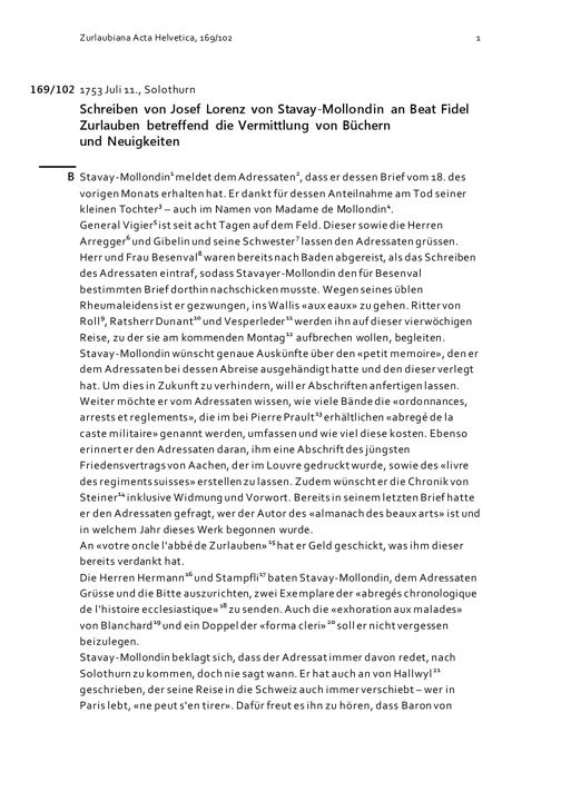 Schreiben von Josef Lorenz von Stavay-Mollondin an Beat Fidel Zurlauben betreffend die Vermittlung von Büchern und Neuigkeiten
