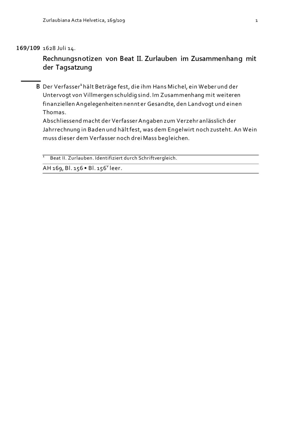Acta Helvetica, Band 169