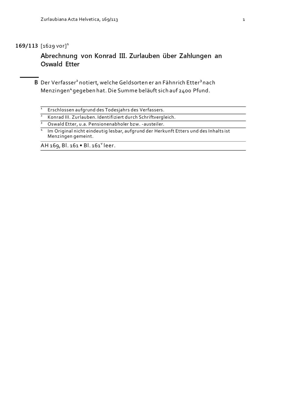 Abrechnung von Konrad III. Zurlauben über Zahlungen an Oswald Etter