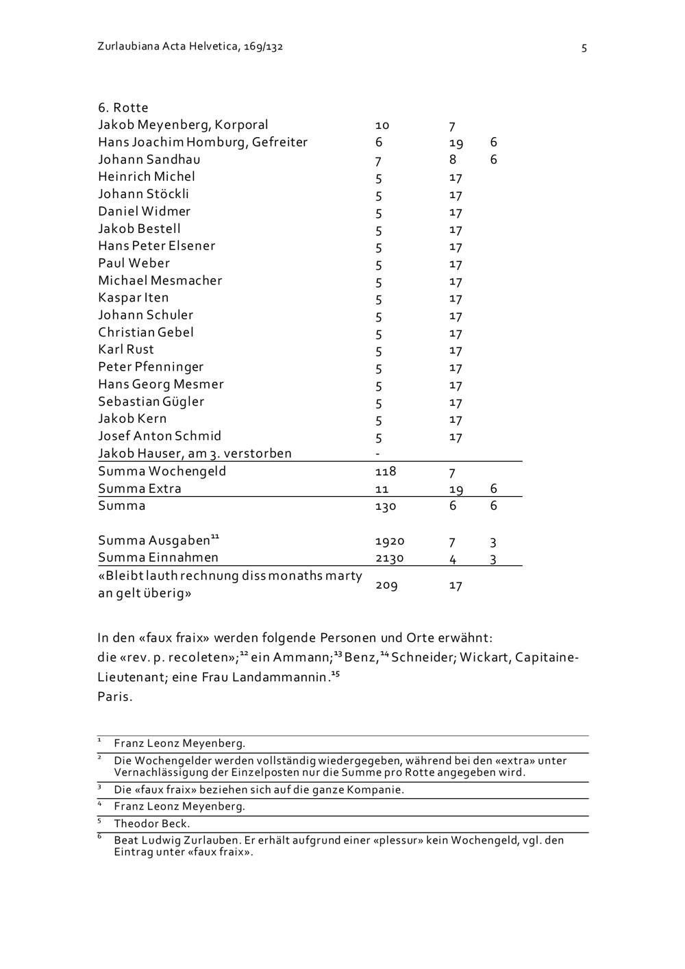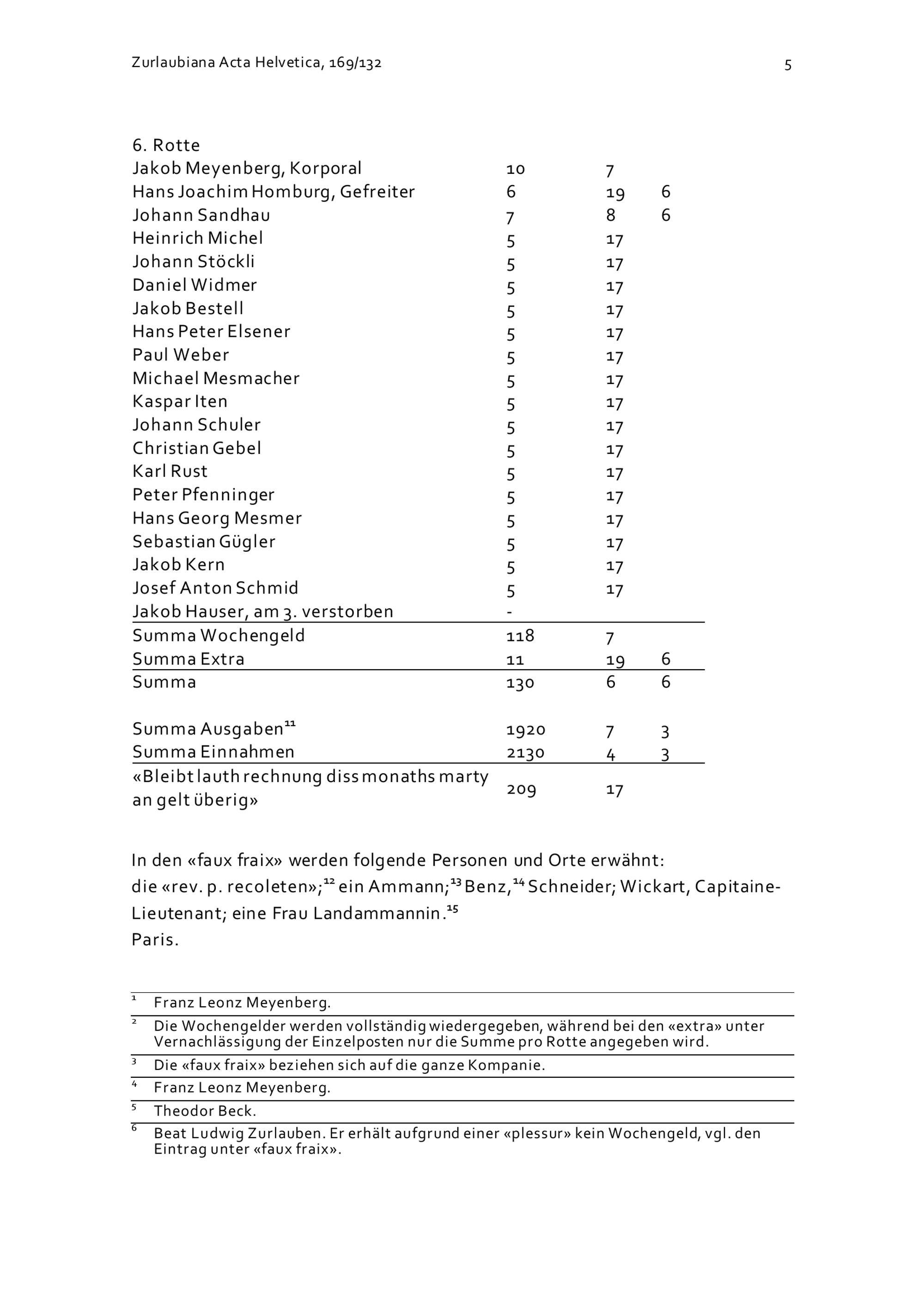 Mannschaftsrodel der Kompanie Zurlauben im Regiment Pfyffer vom März 1713