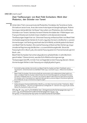 Zwei Textfassungen von Beat Fidel Zurlaubens Werk über Phalantos, den Gründer von...