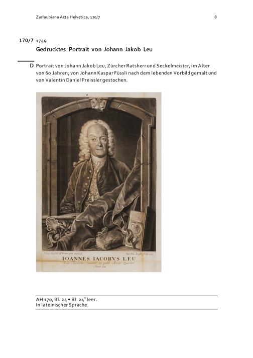 Druck: Portrait von Johann Jakob Leu