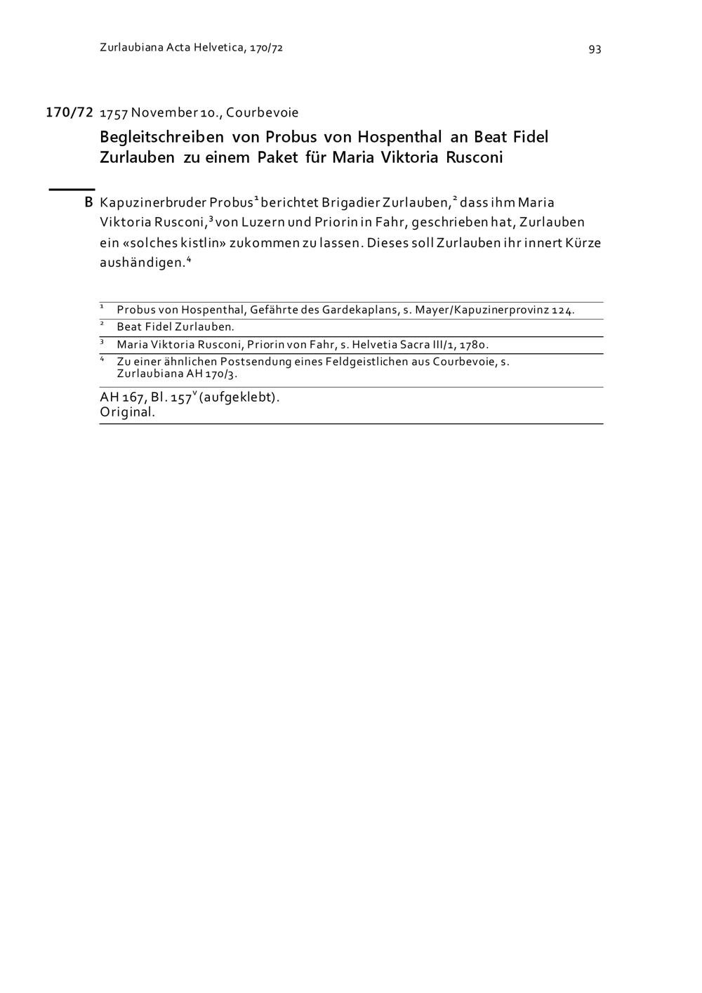 Begleit Schreiben von Probus von Hospenthal an Beat Fidel Zurlauben zu einem Paket für Maria Viktoria Rusconi