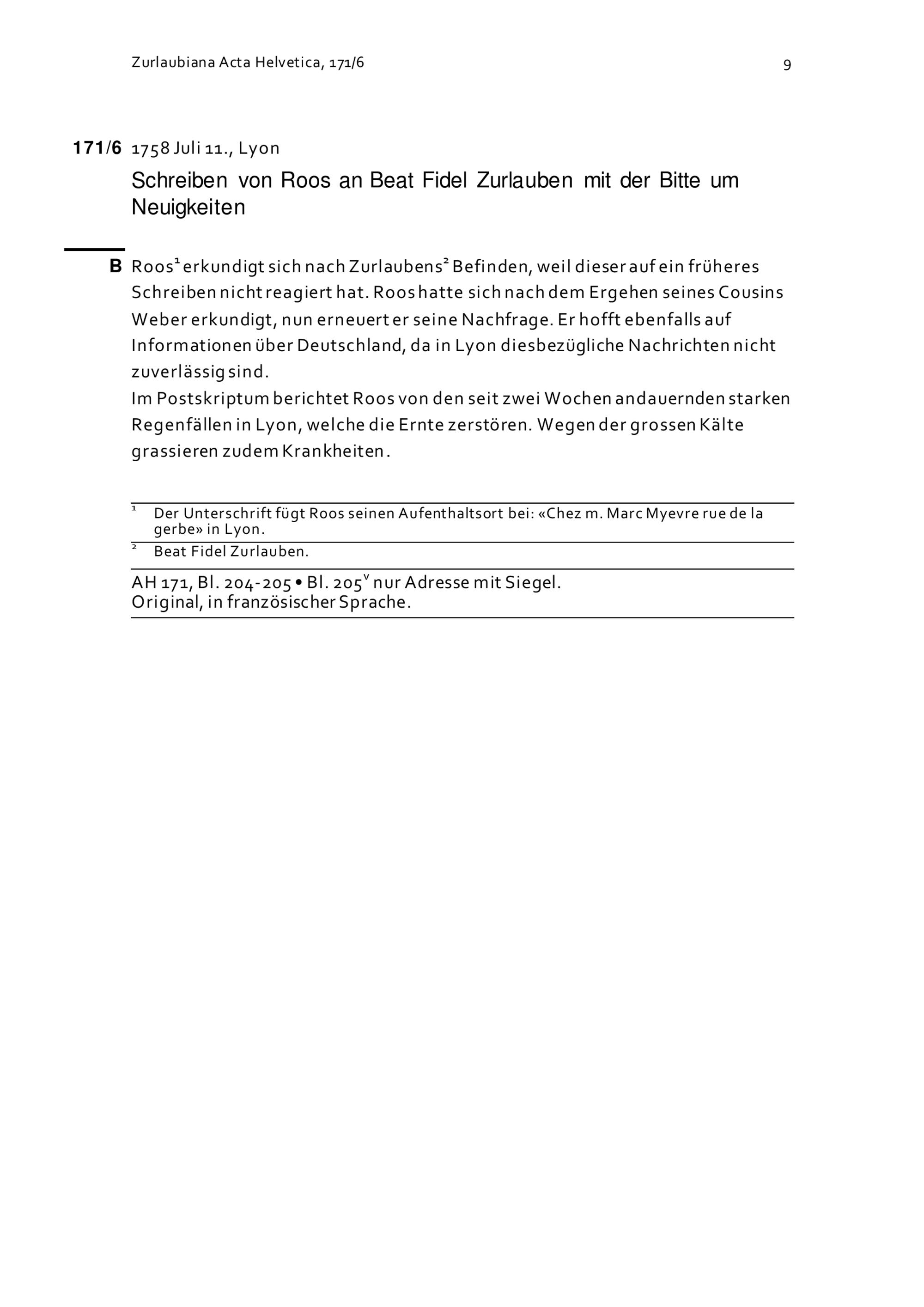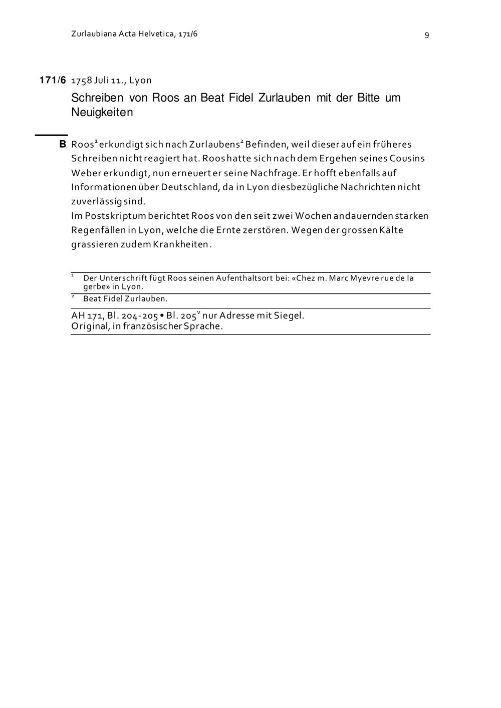 Schreiben von Roos an Beat Fidel Zurlauben mit der Bitte um Neuigkeiten