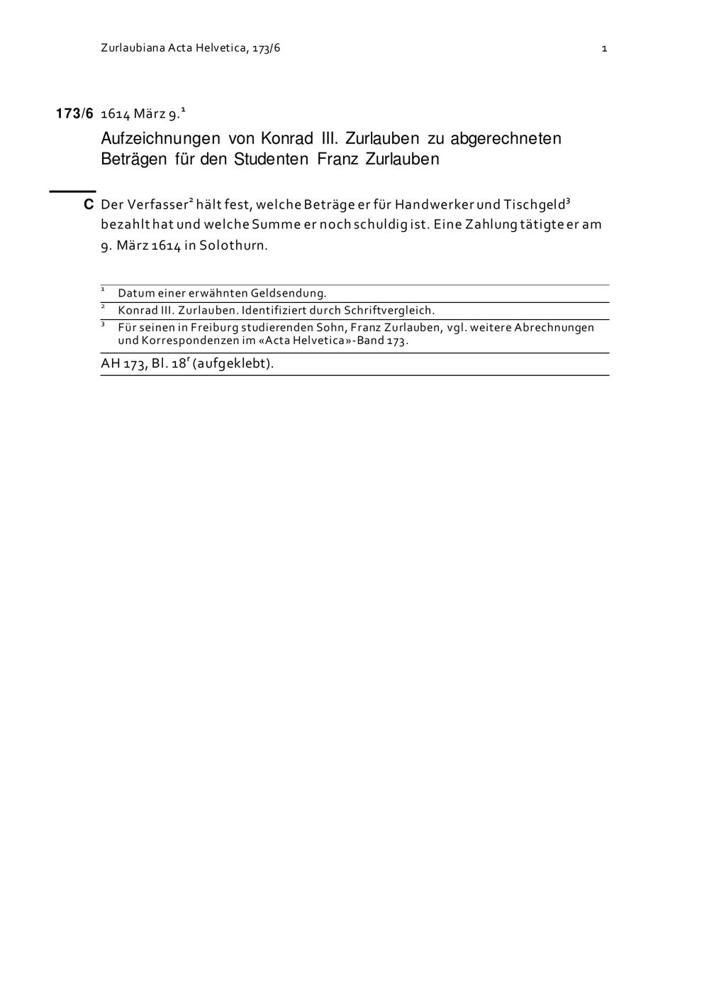 Acta Helvetica, Band 173