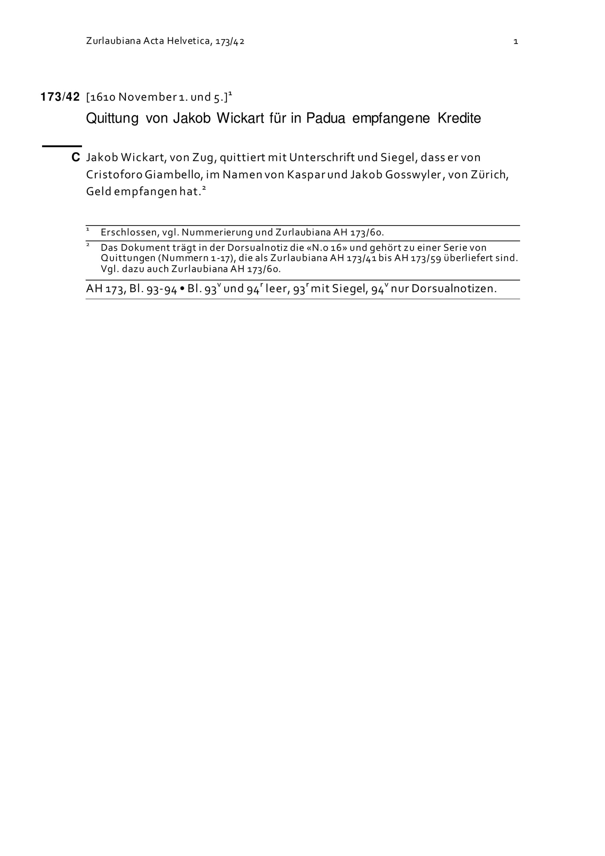 Acta Helvetica, Band 173