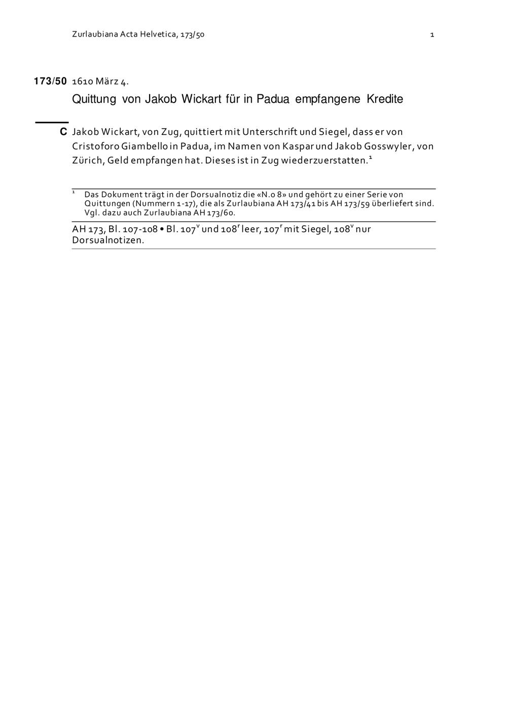 Quittung von Jakob Wickart für in Padua empfangene Kredite