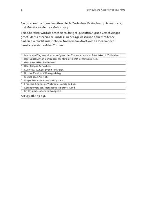 Lebensbeschreibung von Beat Jakob II. Zurlauben