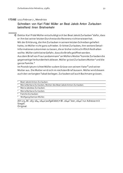 Schreiben von Karl Fidel Müller an Beat Jakob Anton Zurlauben betreffend ihren Briefverkehr
