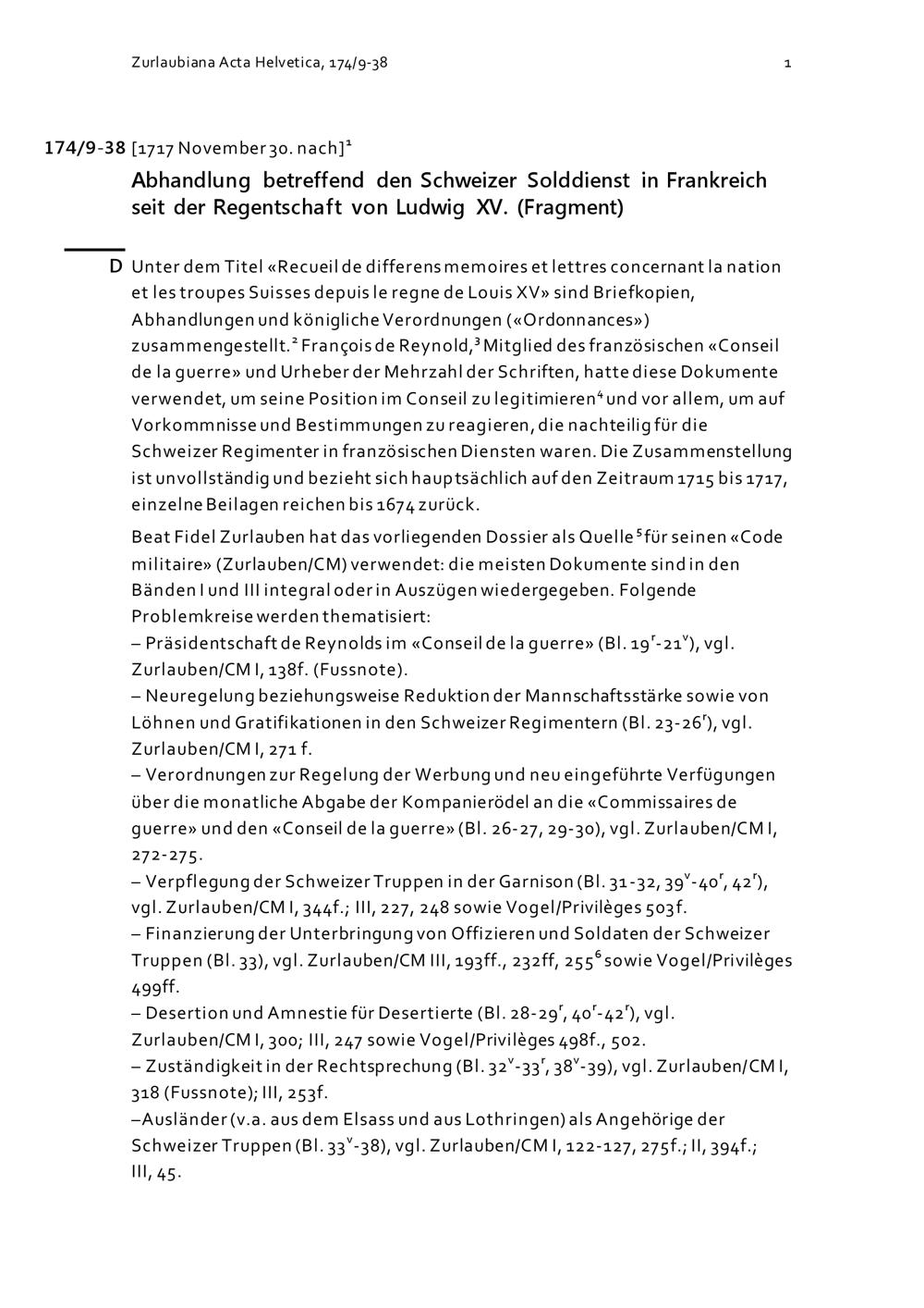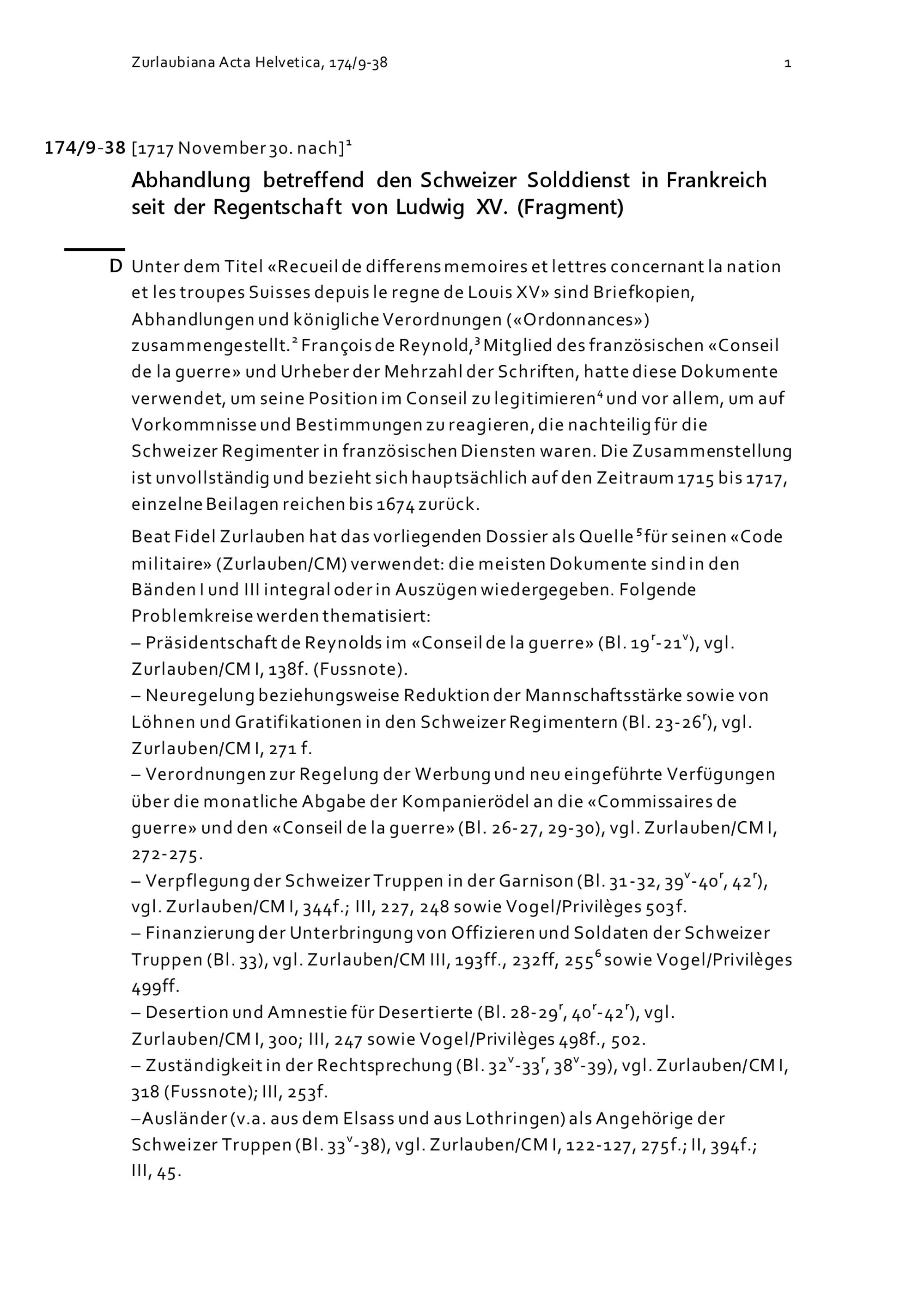 Abhandlung betreffend den Schweizer Solddienst in Frankreich seit der Regentschaft von Ludwig XV.