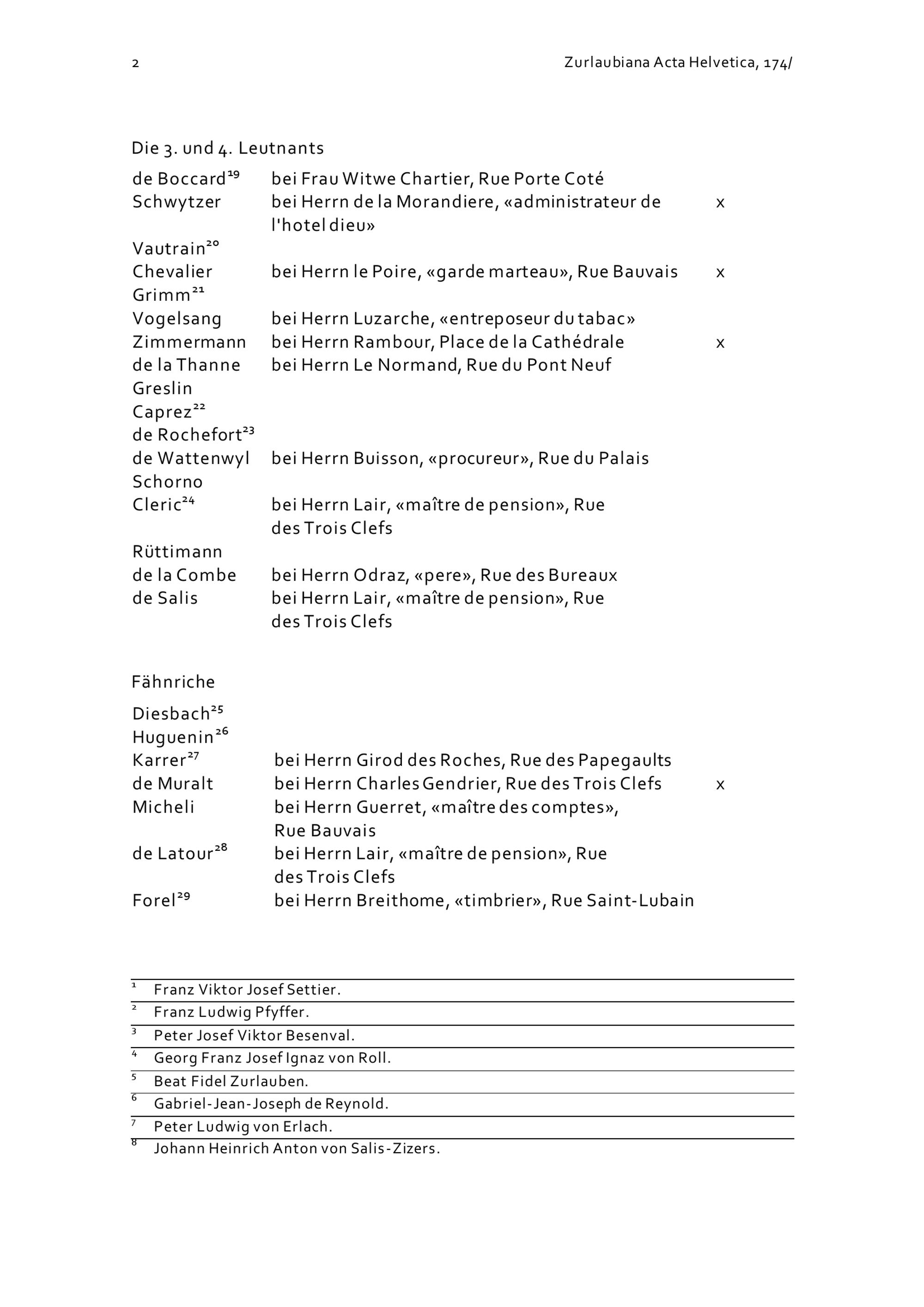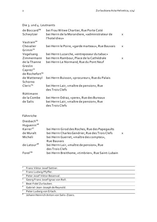 Verzeichnis der Unterkünfte der Offiziere des Schweizer Garderegiments in Blois