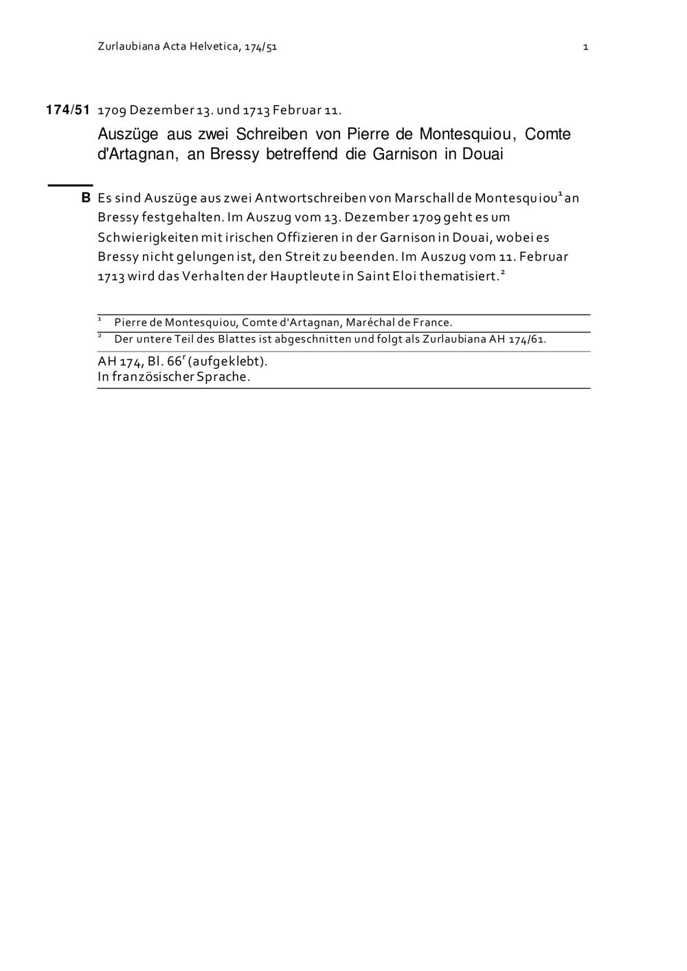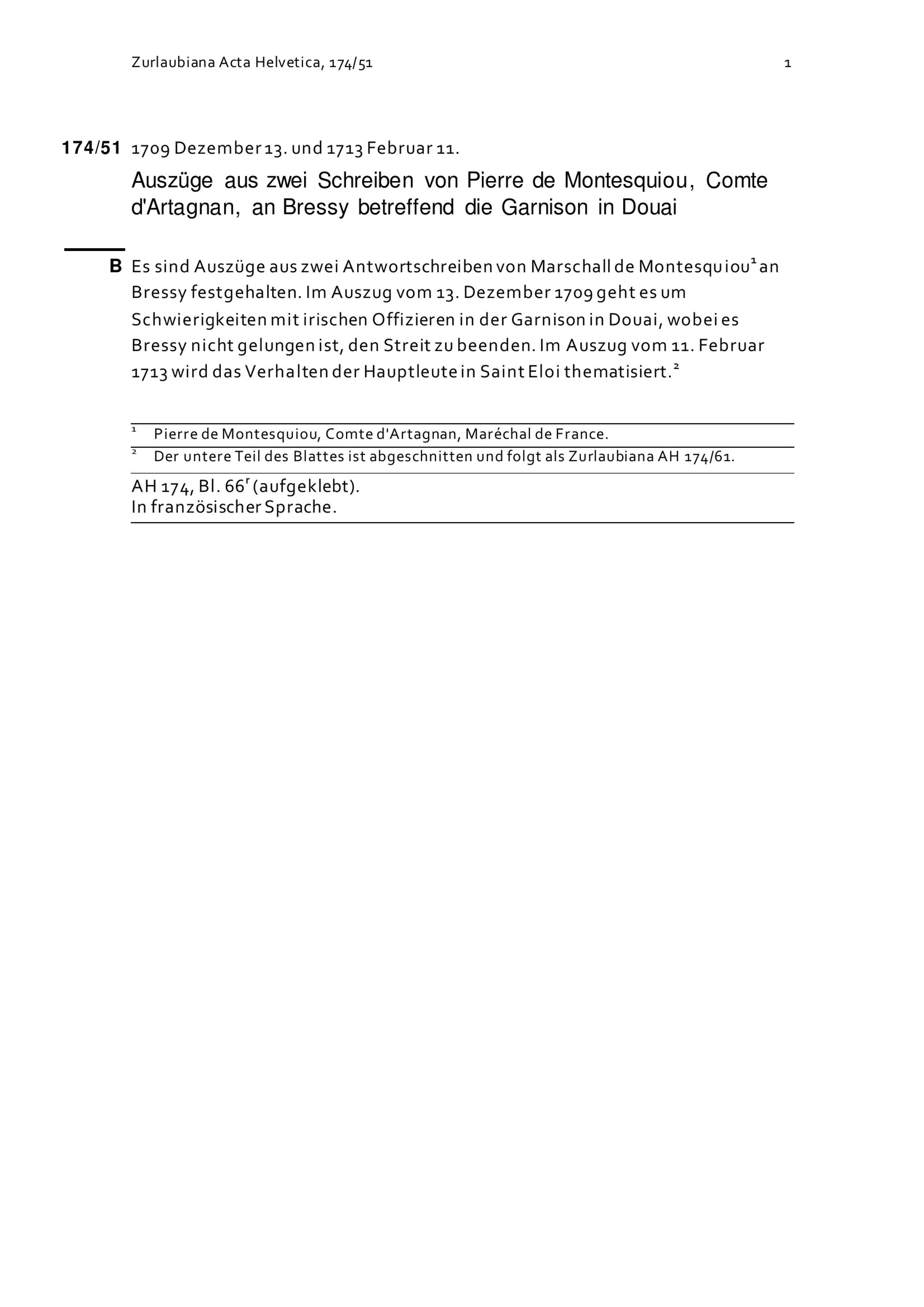 Auszüge aus zwei Schreiben von Pierre de Montesquiou, Comte d'Artagnan, an Bressy betreffend die Garnison in Douai