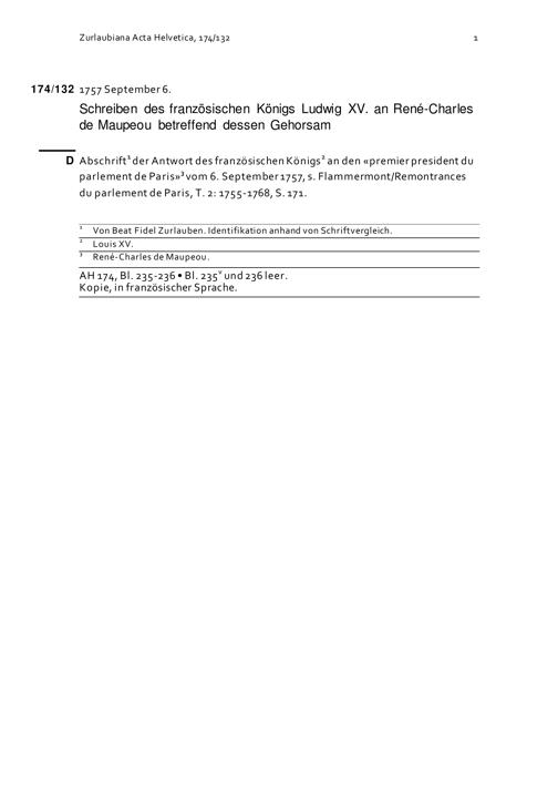 Schreiben des König von Frankreich Ludwig XV. an René-Charles de Maupeou betreffend...