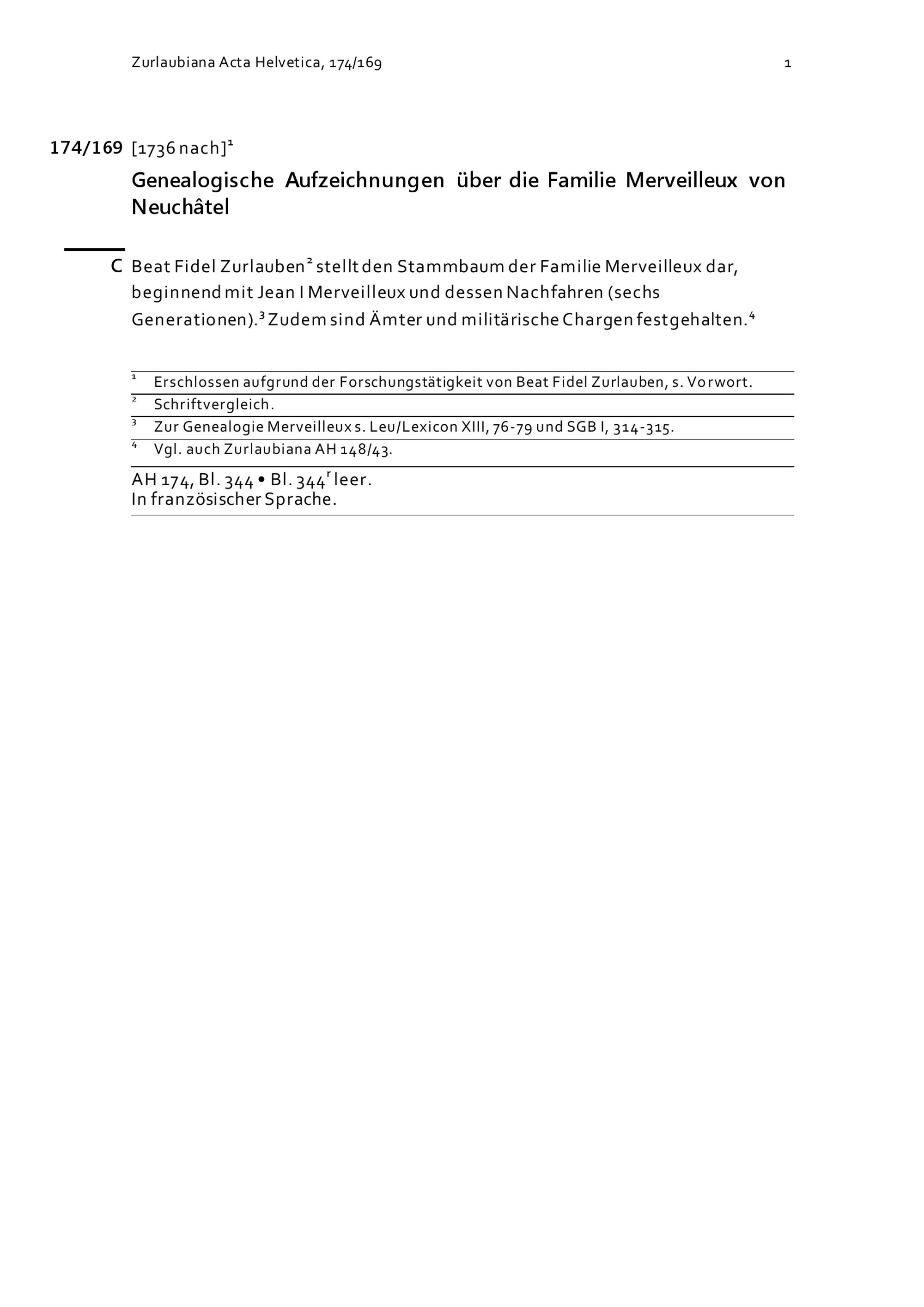 Auszüge von Beat Fidel Zurlauben aus dem Stammbaum der Familie Merveilleux von N...