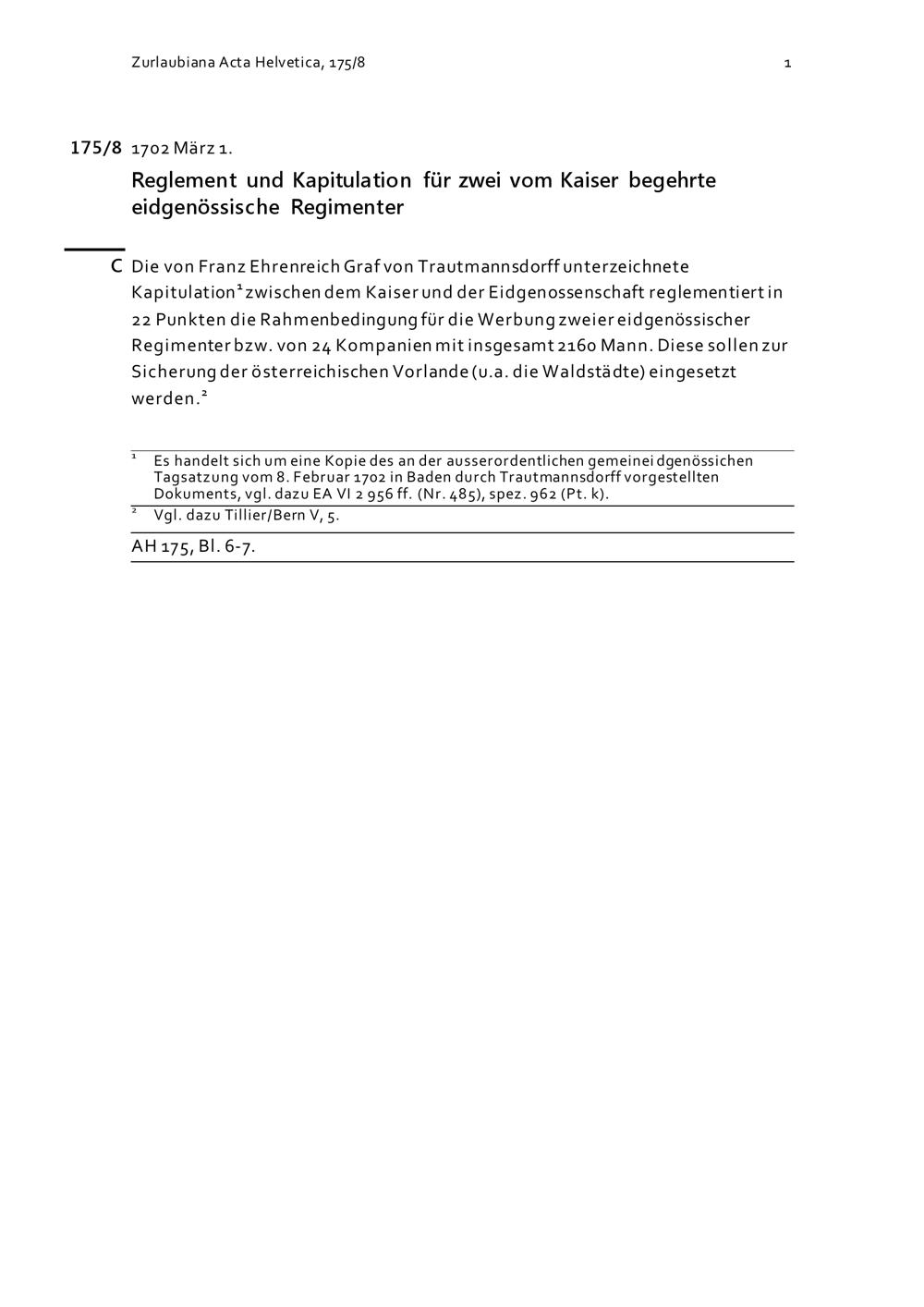 Reglement und Kapitulation für zwei vom Kaiser begehrte eidgenössische Regimenter