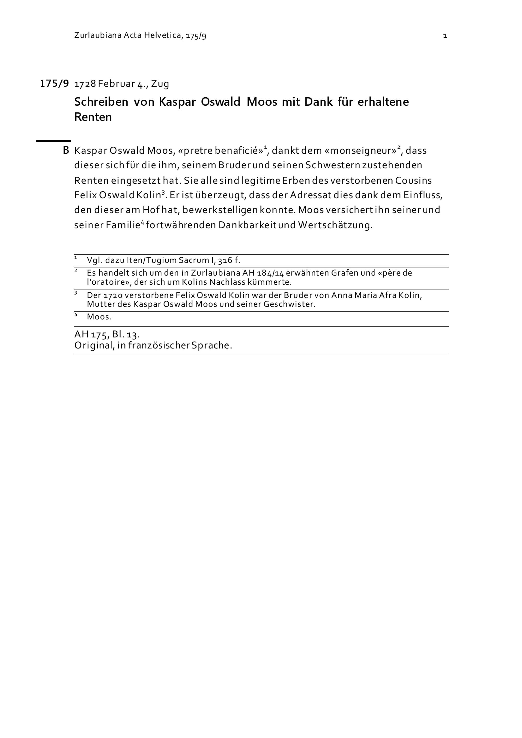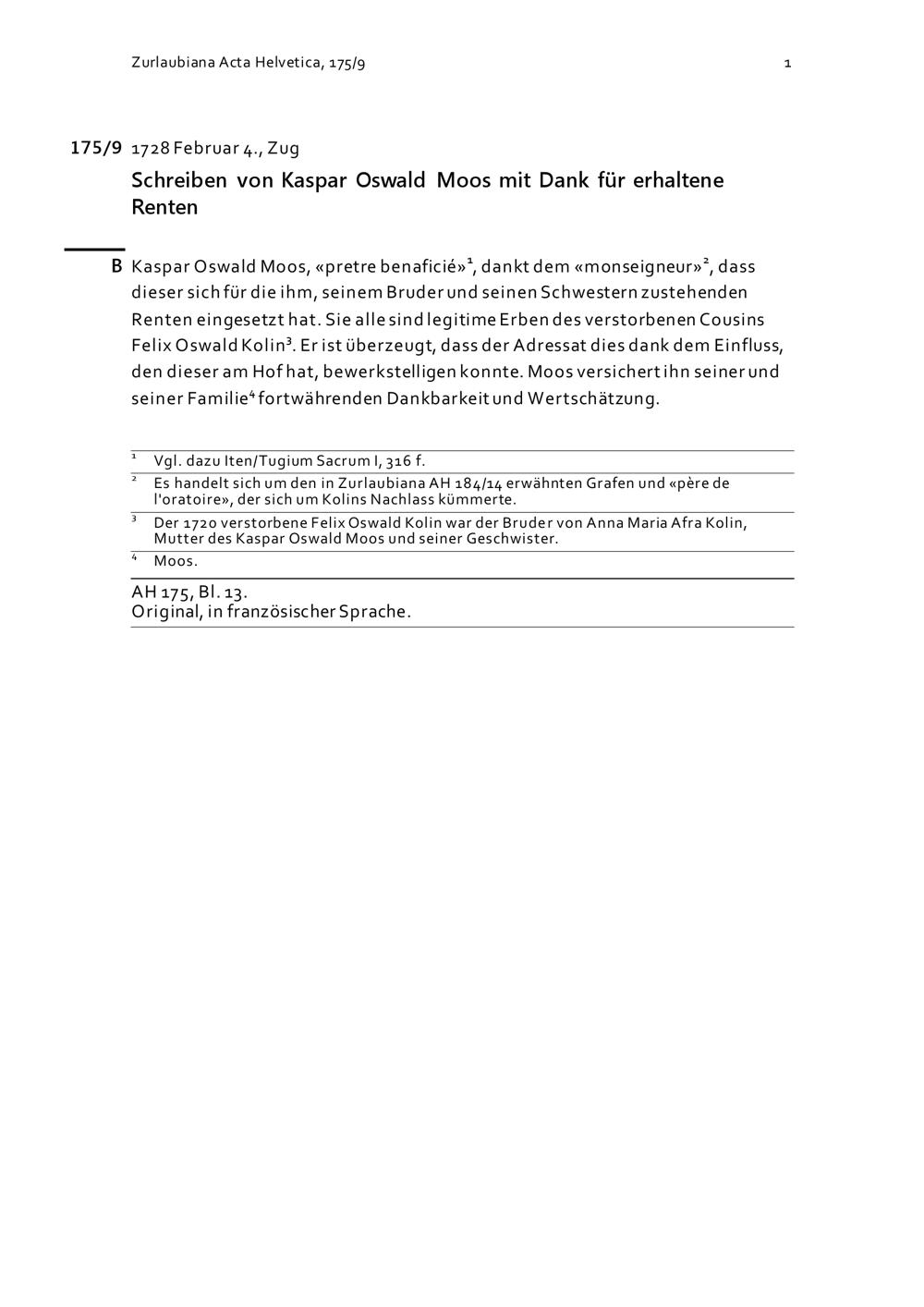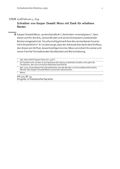 Schreiben von Kaspar Oswald Moos mit Dank für erhaltene Renten