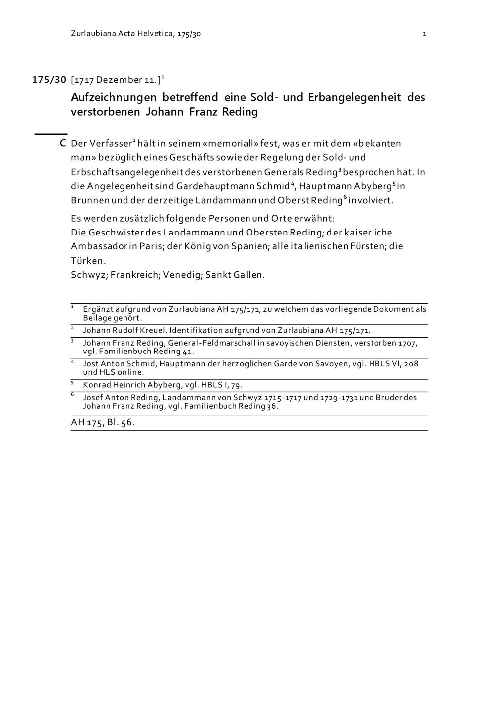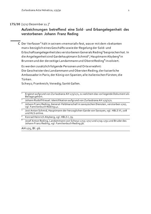 Aufzeichnungen betreffend eine Sold- und Erbangelegenheit des verstorbenen Johann Franz Reding