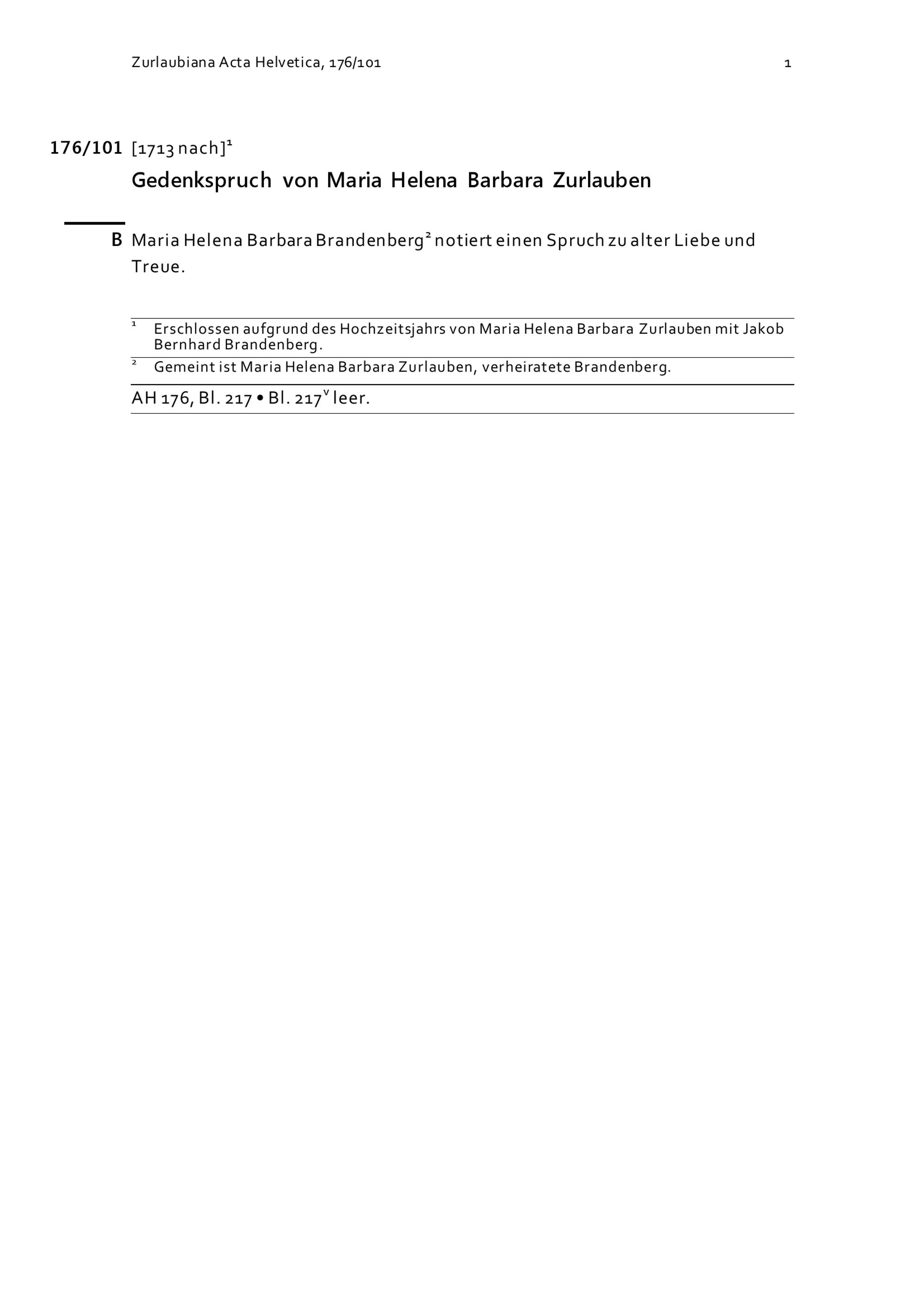 Gedenkspruch von Maria Helena Barbara Zurlauben