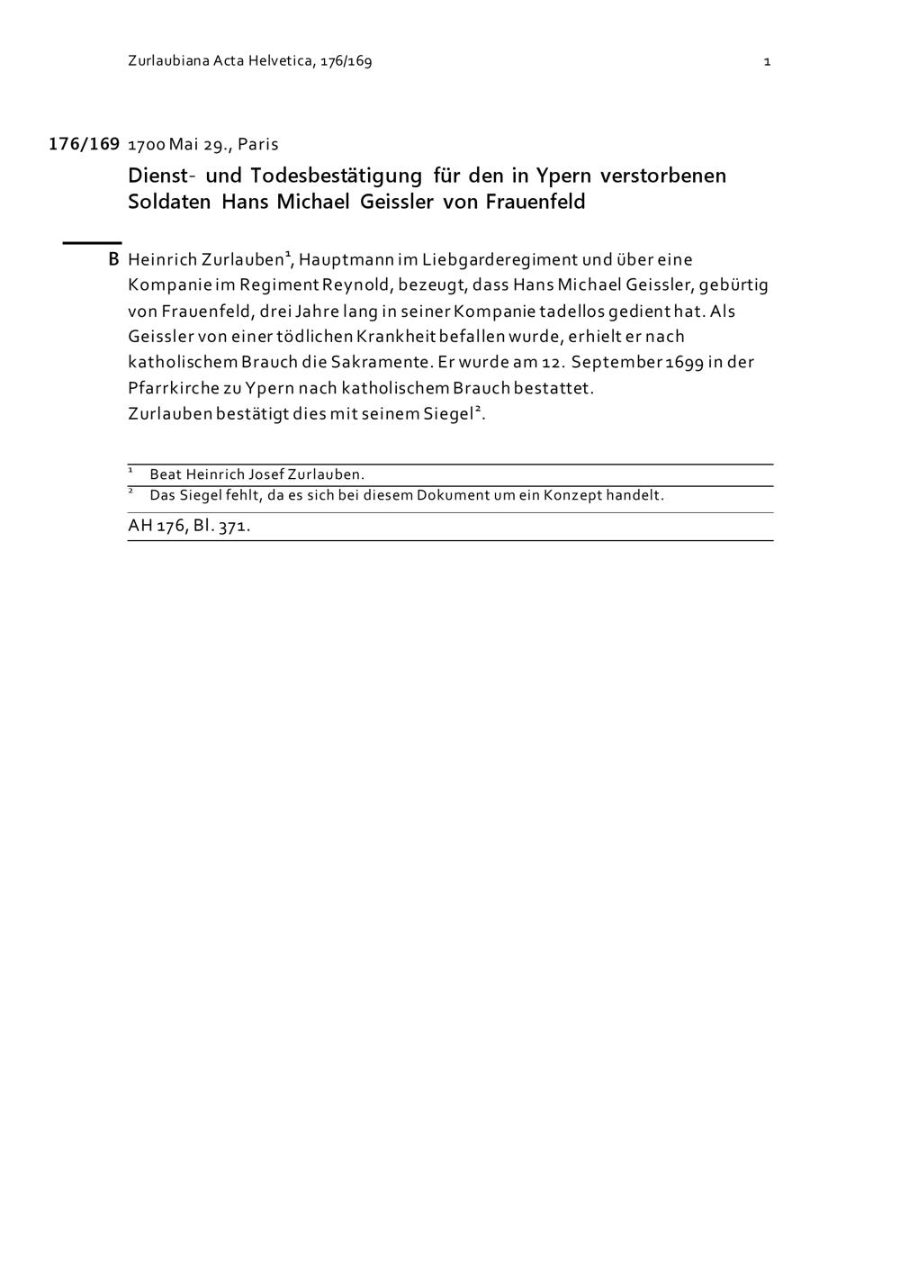 Dienst- und Todesbestätigung für den in Ypern verstorbenen Soldaten Hans Michael Geissler von Frauenfeld