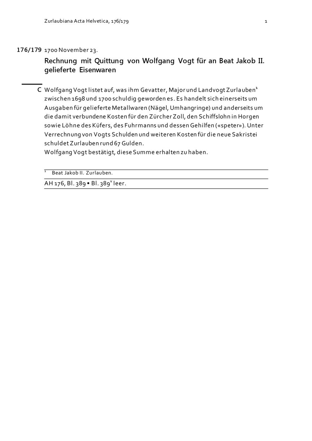 Acta Helvetica, Band 176