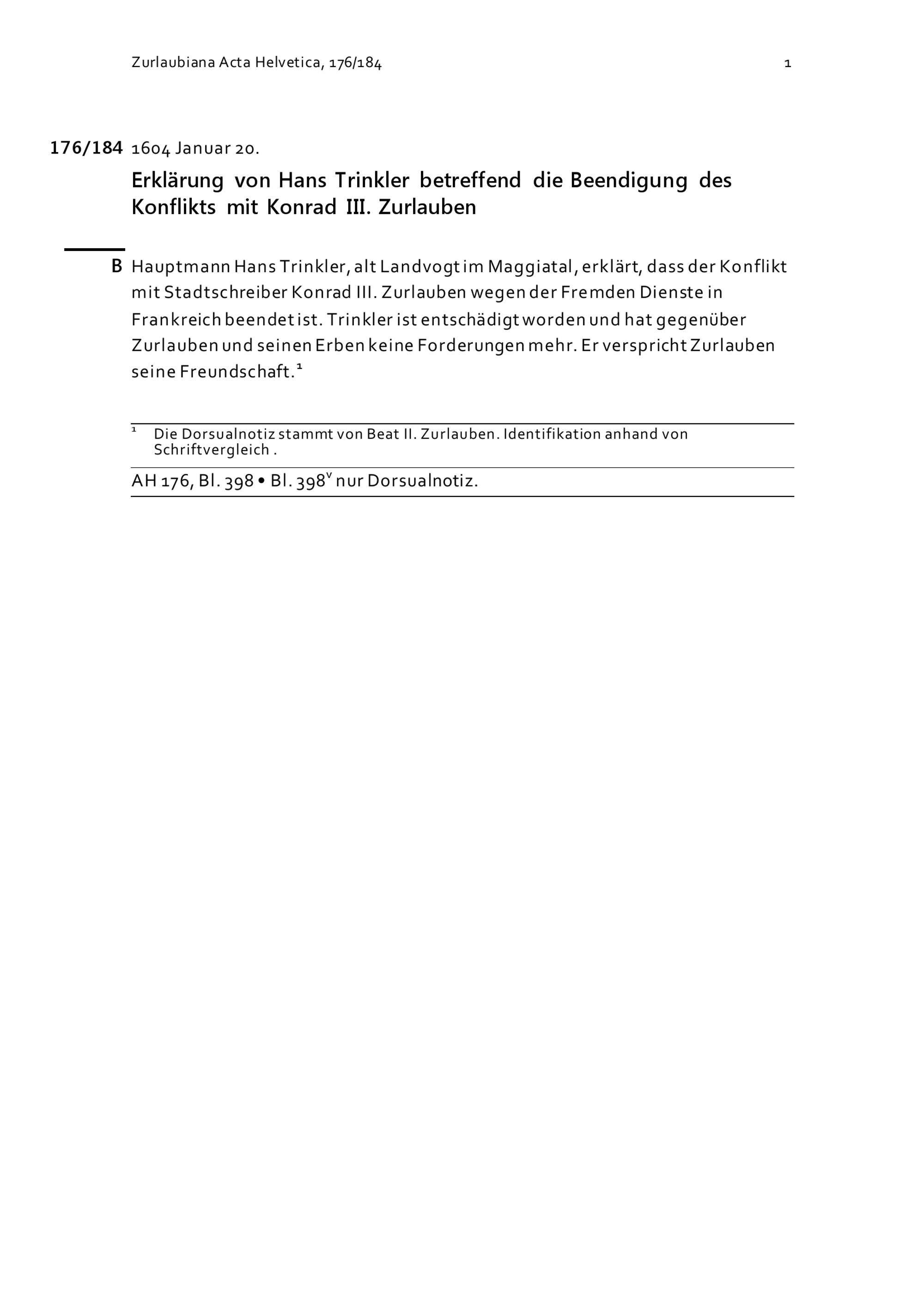 Acta Helvetica, Band 176