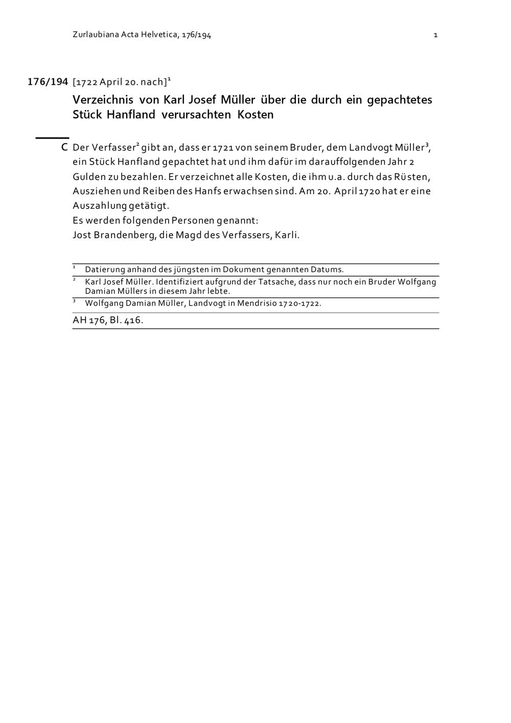 Acta Helvetica, Band 176
