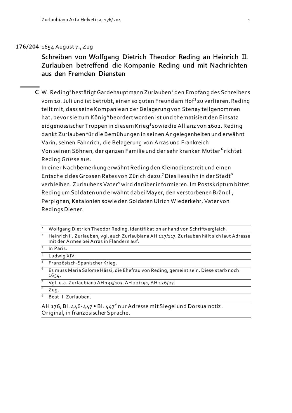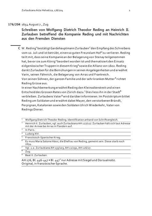 Schreiben von Wolfgang Dietrich Theodor Reding an Heinrich II. Zurlauben betreffend...