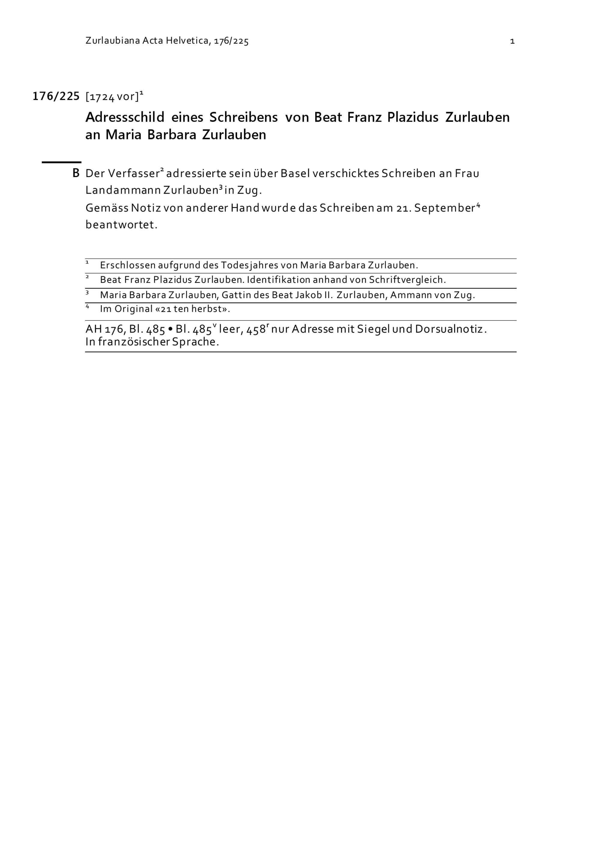 Adressschild eines Schreibens von Beat Franz Plazidus Zurlauben an Maria Barbara Zurlauben