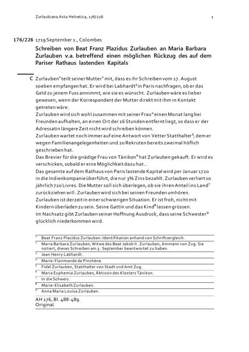 Schreiben von Beat Franz Plazidus Zurlauben an seine Mutter Maria Barbara Zurlauben...