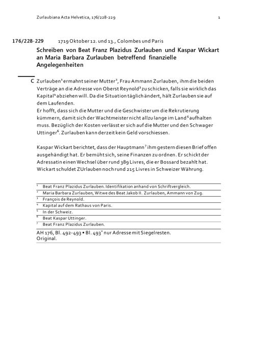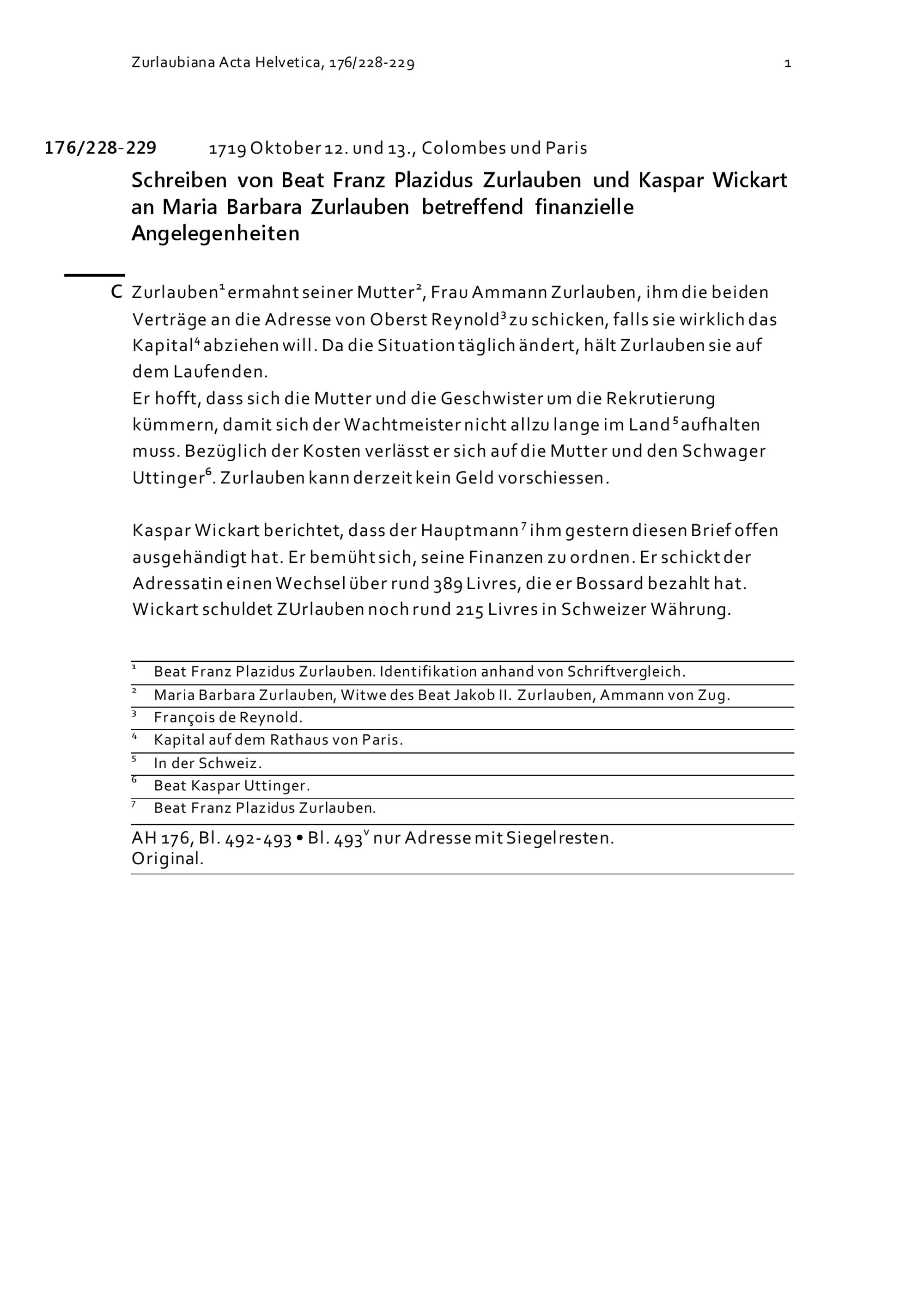 Schreiben von Beat Franz Plazidus Zurlauben und Kaspar Wickart an Maria Barbara Zurlauben...
