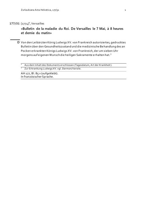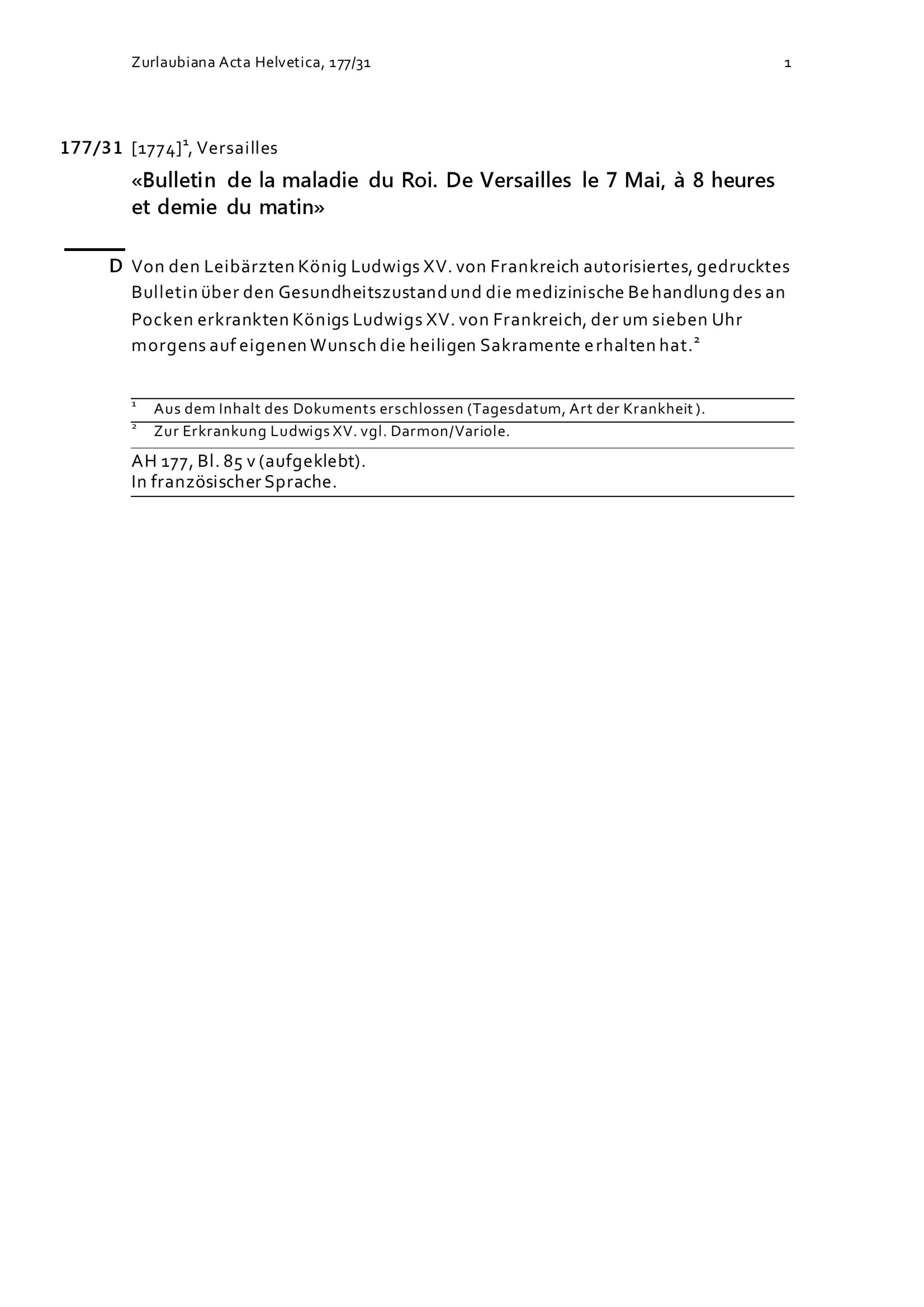 Druck «Bulletin de la maladie du Roi. De Versailles le 7 Mai, à 8 heures et demie du matin»