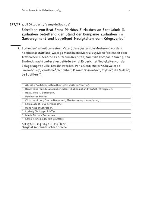 Schreiben eines Offiziers an Beat Heinrich Josef Zurlauben betreffend die Promotion von Graf Beat Jakob Zurlauben und die Beziehung zwischen Georg Karl Knopfli und Kaspar Knopfli