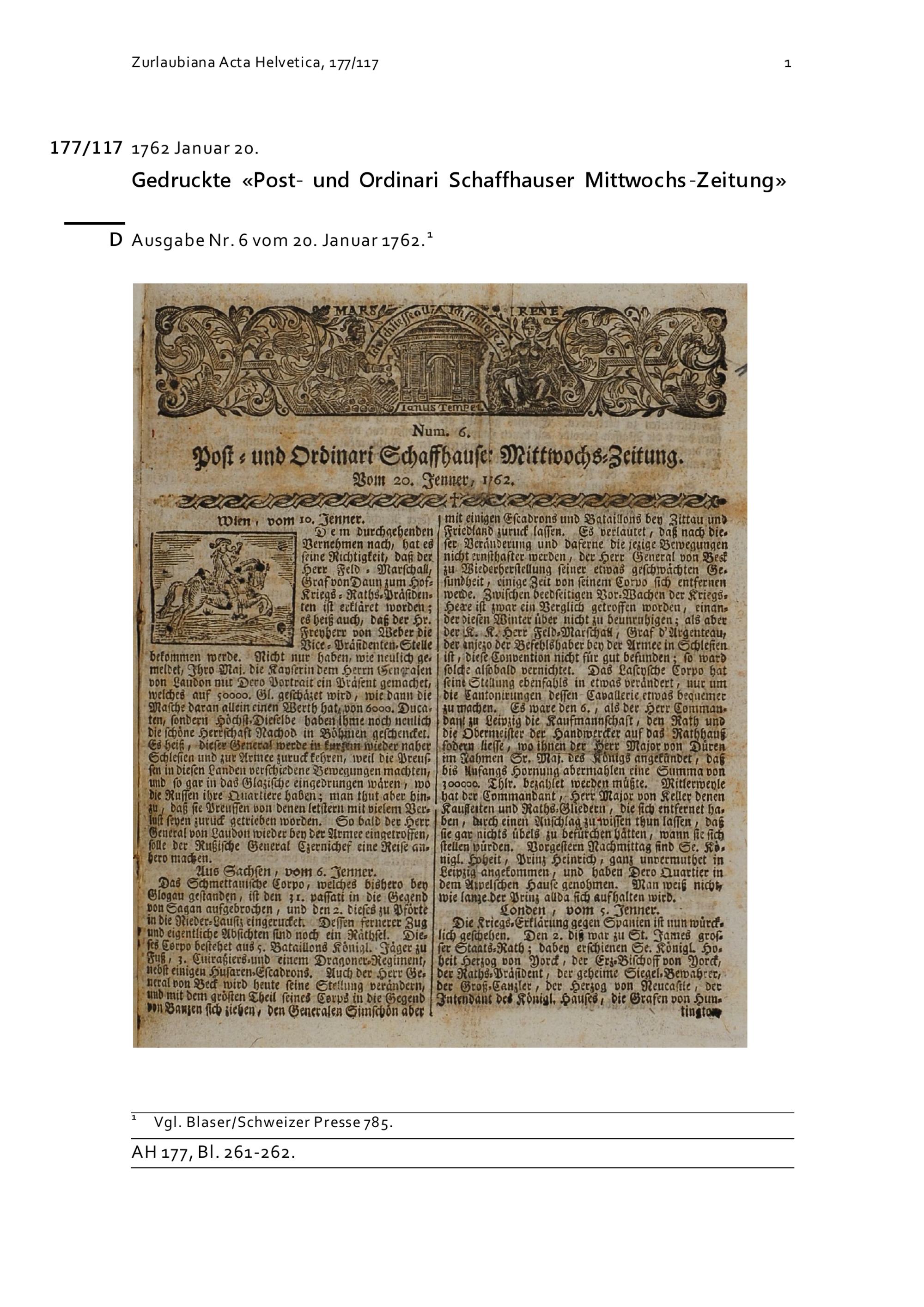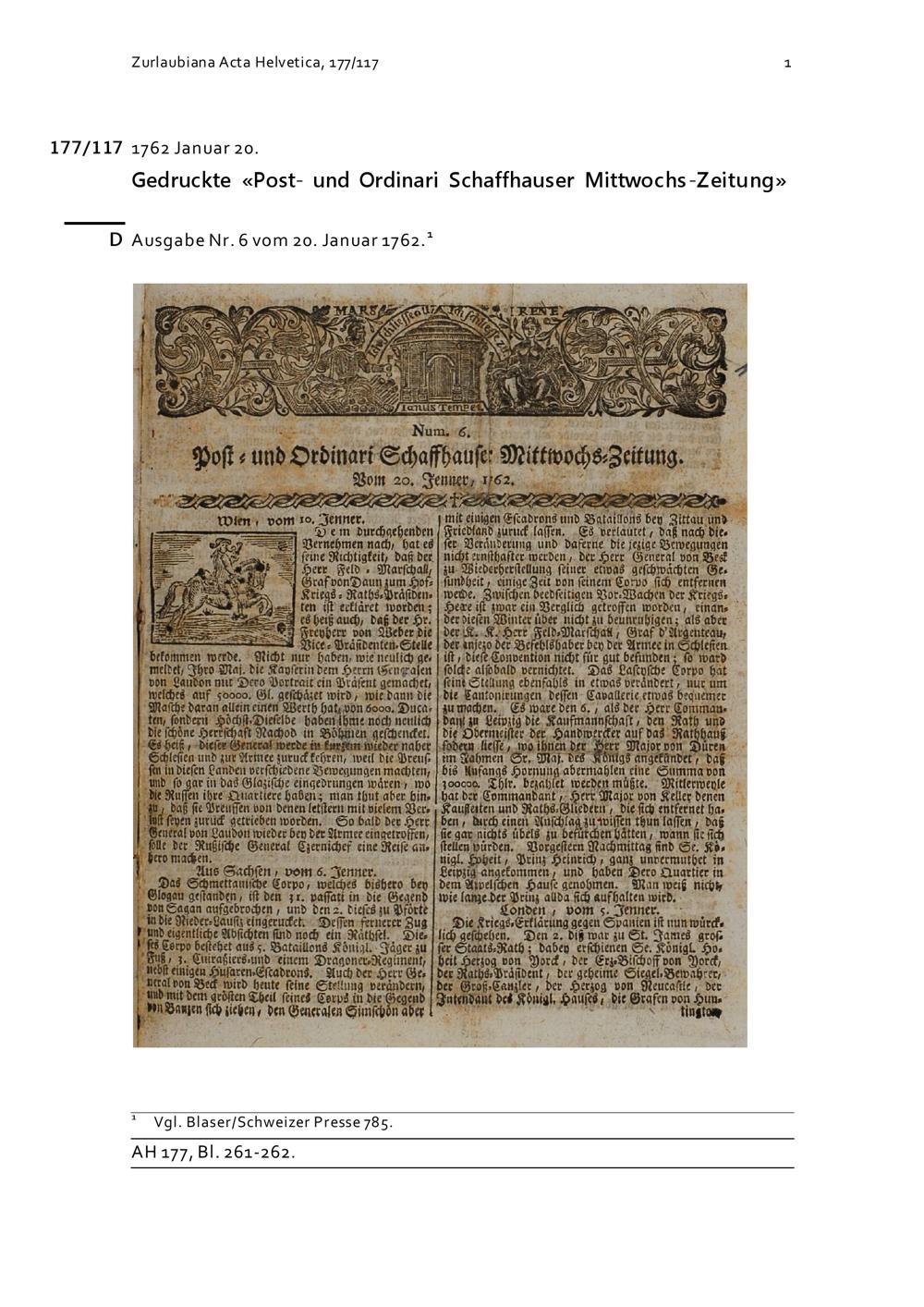 Zeitung: Post- und Ordinari Schaffhauser Mittwochs-Zeitung